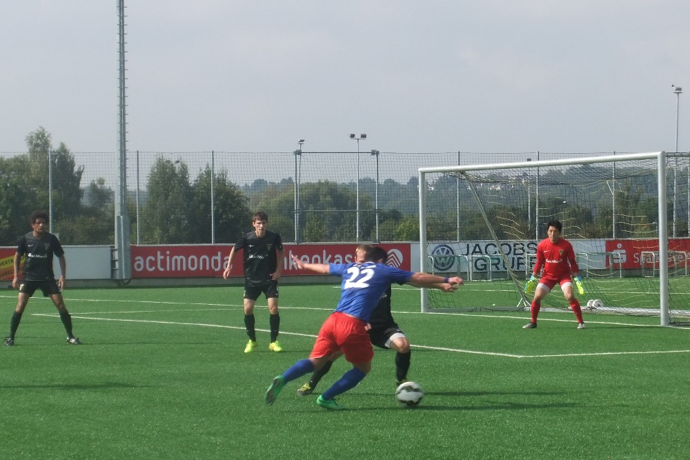 Gegner Windeck reiste ungeschlagen an den Tivoli, war den mit einigen Akteuren aus dem Regionalligakader angetretenen Alemannen aber im ersten Durchgang in allen Belangen unterlegen. Die logische Konsequenz war die verdiente Aachener Führung nach 12 Minuten. Kühnel fand Brauweiler mit einer Ecke von der linken Seite am langen Pfosten und der Abwehrrecke konnte das Leder sträflich frei mit der Innenseite zum 1:0 über die Linie bugsieren. Die Tivoli-Kicker blieben am Drücker. Nach einer Linksflanke von Mohr verpasste Duspara mit einer Direktabnahme nur knapp das zweite Tor. Dieses fiel in der 28. Minute durch einen Konter. Nach einem Ballgewinn von Stevens schalteten die Schwarz-Gelben blitzschnell um. Über Kühnel, Wirtz und Duspara landete die Kugel wieder bei Stevens, der den Angriff aus dem Lehrbuch eiskalt zum 2:0 abschloss. Sekunden vor dem Pausenpfiff hatte Duspara sogar das 3:0 auf dem Fuß. Wieder war Mohr der Wegbereiter, aber diesmal bekam der Angreifer das Leder nicht mehr unter Kontrolle.
