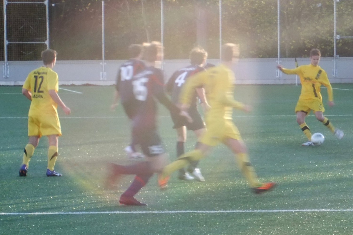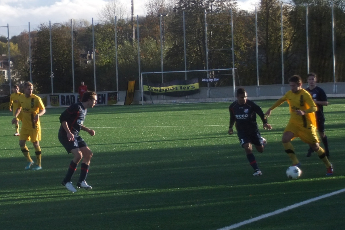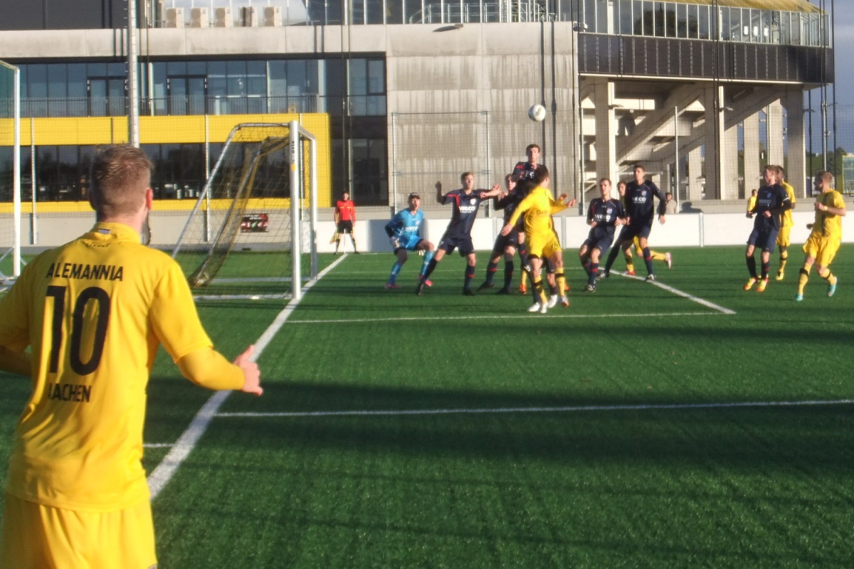 Vor 135 Zuschauern auf dem Kunstrasenplatz „Alkmaar“ sammelten Mark Flekken, Mario Erb, Sascha Marquet und Dario Schumacher Spielpraxis in der Aachener U23. Die Gäste aus dem Rhein-Sieg-Kreis waren als Tabellenneunter mit der Empfehlung von elf Gegentoren in den beiden letzten Partien an den Tivoli gereist. Da war es nicht sonderlich verwunderlich, dass Windeck sehr kompakt agierte und den spielstarken Alemannen nur wenig Räume ermöglichte. Trotz deutlicher Feldvorteile gelang es den Schwarz-Gelben im ersten Spielabschnitt deshalb nicht, sich eine klare Torchance zu erspielen. Stattdessen fiel kurz vor der Pause wie aus heiterem Himmel die Führung für die Gäste. Flekken konnte eine Freistoßhereingabe aus dem rechten Halbfeld bei nass-kaltem Wetter nicht festhalten und Buchholz bugierte das Leder aus kurzer Distanz zum 0:1 über die Linie (42.).