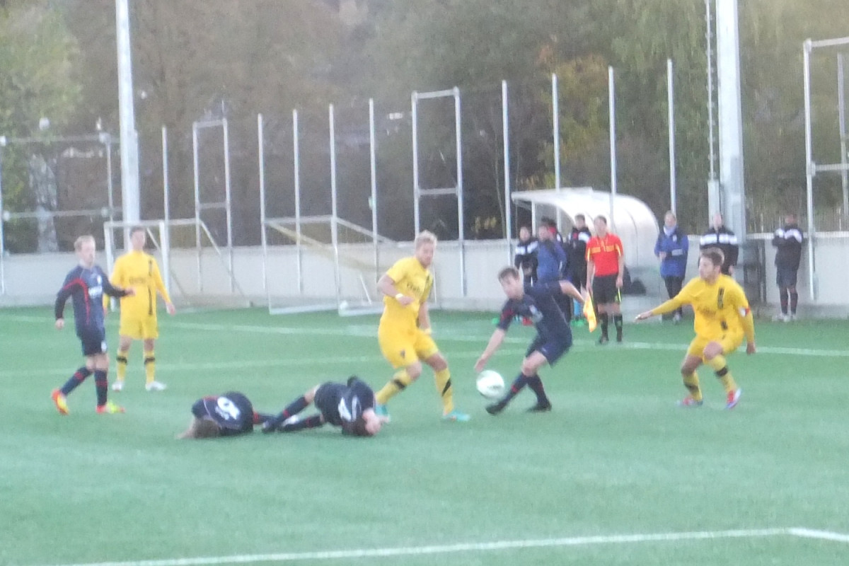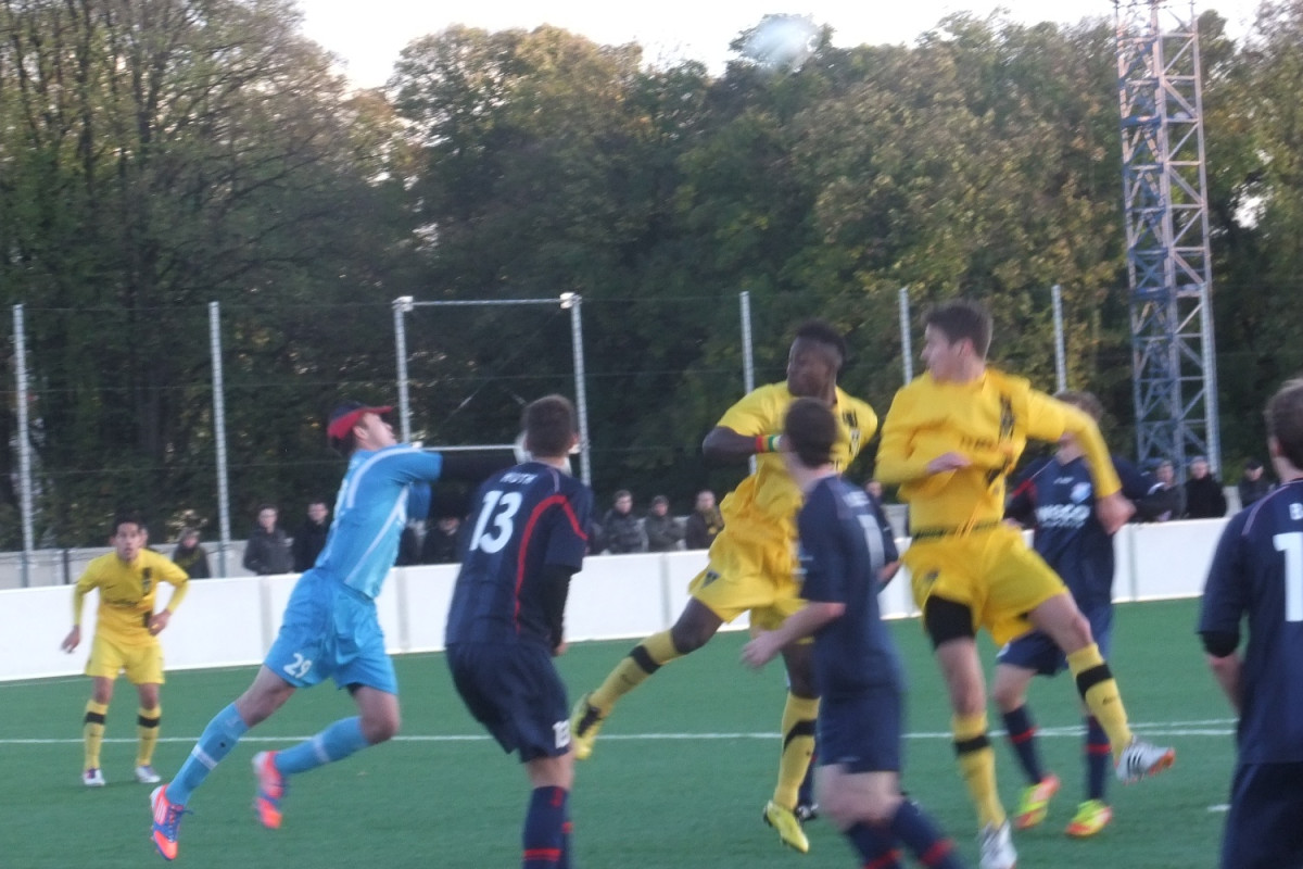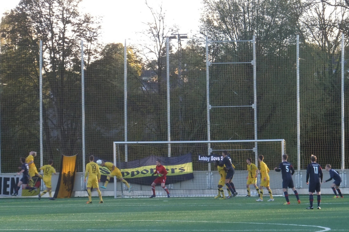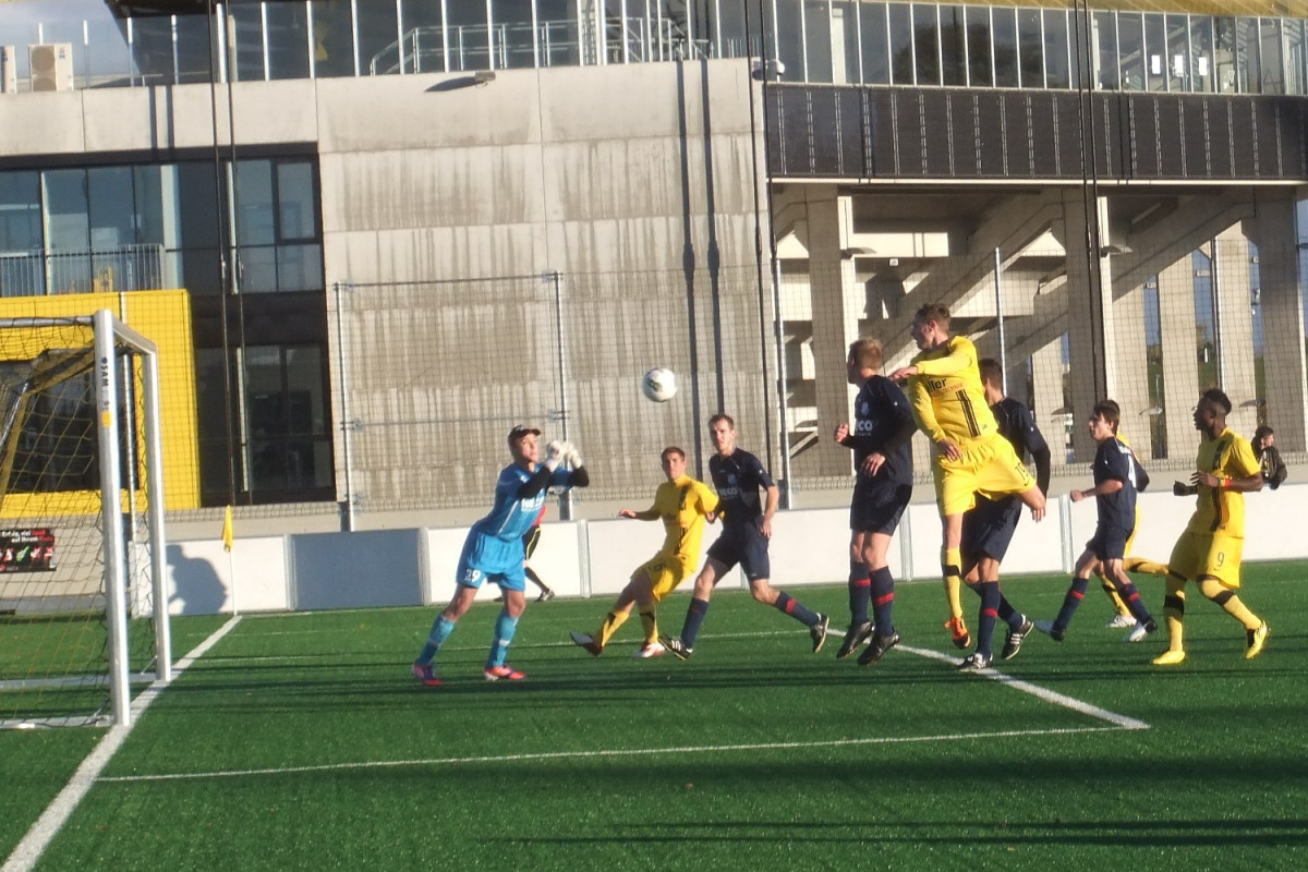 Vor 135 Zuschauern auf dem Kunstrasenplatz „Alkmaar“ sammelten Mark Flekken, Mario Erb, Sascha Marquet und Dario Schumacher Spielpraxis in der Aachener U23. Die Gäste aus dem Rhein-Sieg-Kreis waren als Tabellenneunter mit der Empfehlung von elf Gegentoren in den beiden letzten Partien an den Tivoli gereist. Da war es nicht sonderlich verwunderlich, dass Windeck sehr kompakt agierte und den spielstarken Alemannen nur wenig Räume ermöglichte. Trotz deutlicher Feldvorteile gelang es den Schwarz-Gelben im ersten Spielabschnitt deshalb nicht, sich eine klare Torchance zu erspielen. Stattdessen fiel kurz vor der Pause wie aus heiterem Himmel die Führung für die Gäste. Flekken konnte eine Freistoßhereingabe aus dem rechten Halbfeld bei nass-kaltem Wetter nicht festhalten und Buchholz bugierte das Leder aus kurzer Distanz zum 0:1 über die Linie (42.).