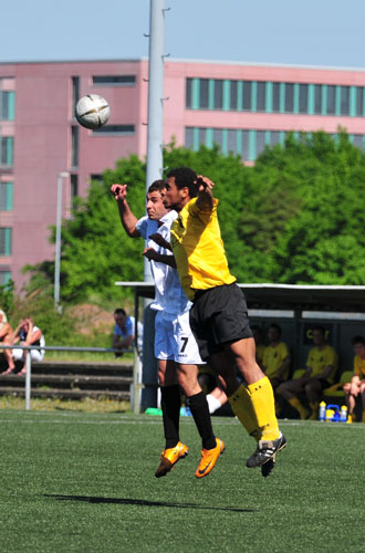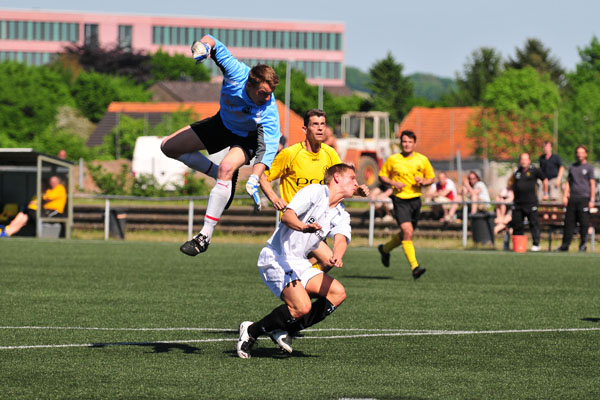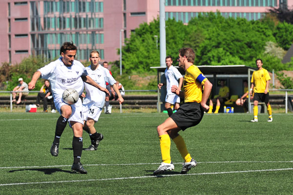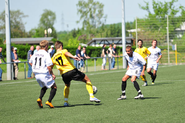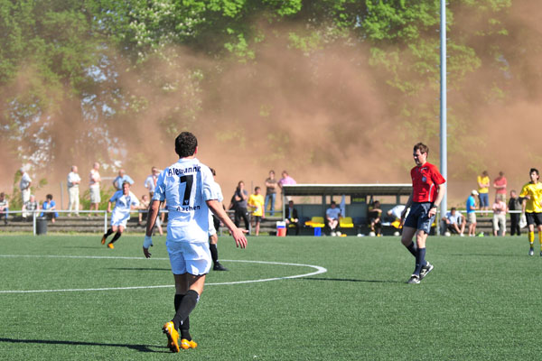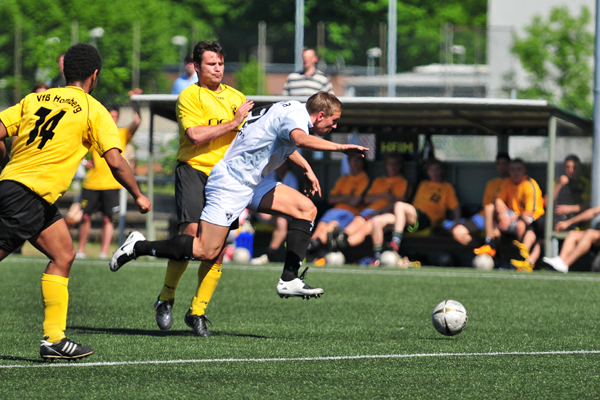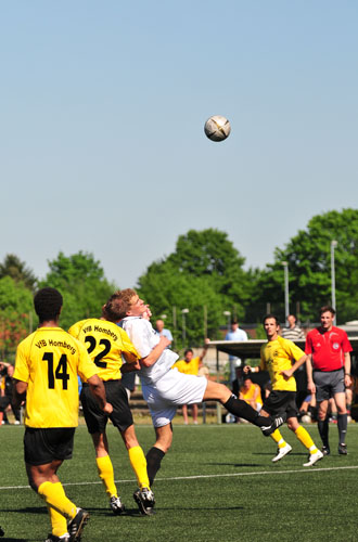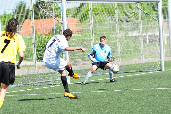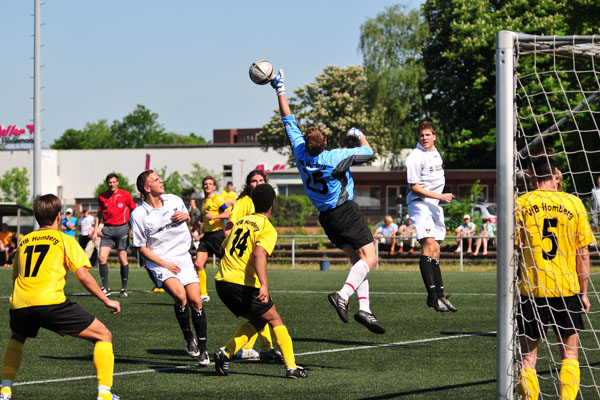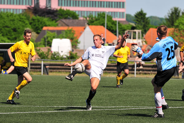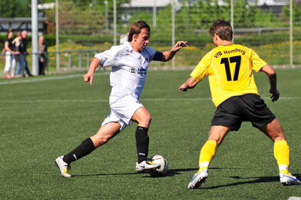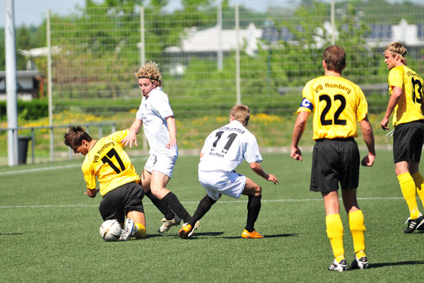 Die Ausgangslage war klar: Ein Sieg aus den beiden letzten Partien und die junge Aachener Elf, die nach der Hinrunde noch 5 Punkte Rückstand zum rettenden Ufer hatte, wäre am Ziel. Homberg hingegen hätte nur ein Sieg weiter von der Teilnahme an der NRW-Liga träumen lassen. So begannen die Kicker vom Rheindeich zunächst engagiert und kamen durch die Brüder Nikola und Benjamin Koncic früh zu zwei guten Möglichkeiten (5., 8.). Effektiver machten es die Hengen-Schützlinge, die gleich mit dem ersten guten Angriff in Front gingen. Schmitz hatte die Kugel geschickt für Holtby abgelegt, der VfB-Keeper Glenz mit einem Schuss ins linke Eck keine Abwehrchance ließ (17.). Nur acht Minuten später konnte Popova mit einem sehenswerten Freistoß aus 20 Metern in den linken Torwinkel die Führung sogar noch ausbauen (25.). Zwei Minuten vor dem Seitenwechsel stellte Marco Quotschalla nach Vorlage von Popova die Weichen aus kurzer Distanz endgültig auf Sieg (43.)