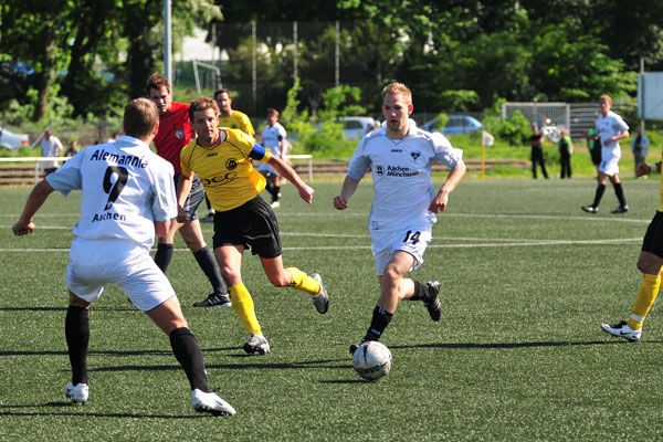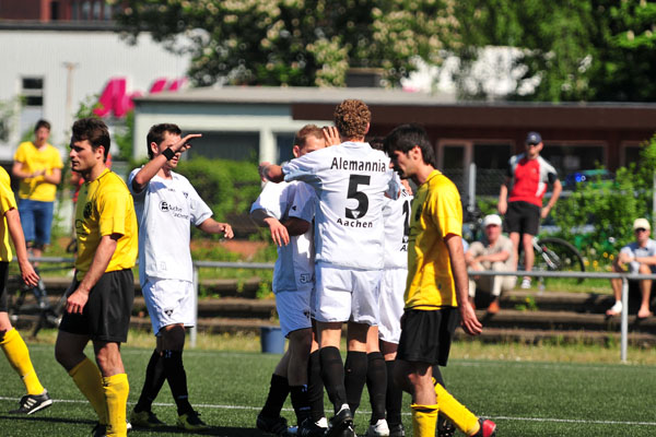 Um 17.17 Uhr war es vollbracht. Mit einem klaren 5:1 (3:0) über den VfB Homberg sicherte sich die Amateurelf der Alemannia am vorletzten Spieltag einen Qualifikationsplatz zur neuen NRW-Liga 2008/2009. Für die Gäste aus dem Duisburger Stadtteil, die sich vor dem Spiel noch theoretische Chancen ausgerechnet hatten, geht es nach dieser Niederlage indes in der sechstklassigen Niederrheinliga um Punkte.
