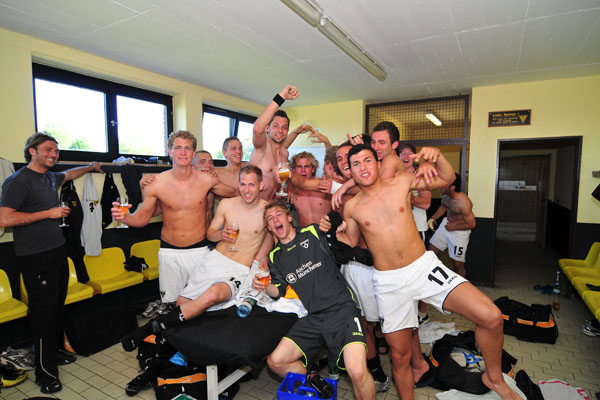 Mit dem höchsten Saisonsieg ist der jungen Aachener Truppe die Qualifikation vor dem letzten Spiel nächste Woche in Straelen nicht mehr zu nehmen. Entsprechend glücklich war ihr Trainer nach dem Spiel: „Ich bin wirklich stolz auf diese Mannschaft. 31 Punkte in der Rückrunde sind eine Riesenleistung. Die die Jungs haben dem Druck der engen Tabellensituation prima standgehalten, während erfahrene Mannschaften Nerven gezeigt haben“, war es für Thomas Hengen nach vier Jahren bei der Alemannia ein toller Abschluss am heimischen Tivoli.