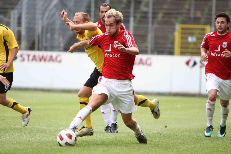 Nach dem Seitenwechsel präsentierten sich die Tivoli-Kicker über weite Strecken engagiert, ließen die nötige Durchschlagskraft vor dem gegnerischen Gehäuse aber weiterhin vermissen. Die Gäste beschränkten sich gut organisiert auf Resultatsverwaltung und lauerten auf Konter. Eine Behandlung des bereits verwarnten Stephan Wanneck an der Außenlinie rief nach 69 Minuten Schiedsrichter Heinrichs auf den Plan. Nach einigen Orientierungsschwierigkeiten gelang es dem Unparteiischen dann auch, den Spieler, der das Spielfeld offenbar ohne Anmeldung wieder betreten hatte, ausfindig zu machen und ihn mit einer Ampelkarte des Feldes zu verweisen. So lebte das Spiel 10 gegen 11 bis zuletzt von der Spannung. Ein wuchtiger Freistoß aus 30 Metern von Sturmtank Daniel Engelbrecht (77.) sollte allerdings die einzige ernsthafte Prüfung für Gästekeeper Rantozw im zweiten Spielabschnitt bleiben-