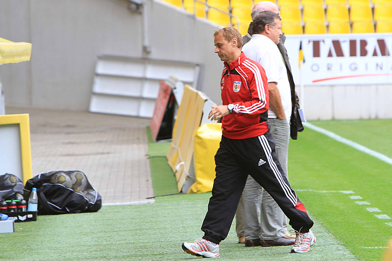 Entsprechend enttäuscht zeigte sich Ralf Aussem nach dem Spiel. „Wir sind durch eine Standardsituation in Rückstand gehalten. Klar, war das ein Torwartfehler. Aber Jared hat die Partie in der zweiten Hälfte mit tollen Paraden offen gehalten“, fand Ralf Aussem nach dem Spiel aufmunternde Worte für seinen Torwart. Vielmehr vermisste der Trainer Leidenschaft und Kreativität. „Wir wollten den Ball ins Tor tragen und haben zu wenige Chancen herausgespielt“, brachte Aussem die Auftaktniederlage seiner Elf auf den Punkt.