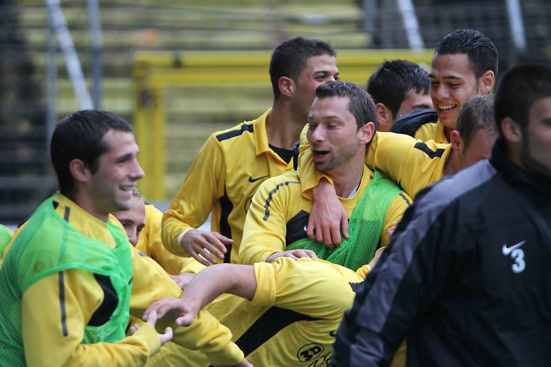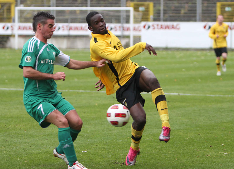 Während sich seine Mannschaftskollegen vor der Abreise nach Bochum unter die 180 Zuschauer auf die Ränge des alten Tivoli gemischt hatten, sammelte Juvhel Tsoumou als einziger Profi Spielpraxis in der NRW-Liga. Die Schwarz-Gelben erwischten einen guten Start und hatten bereits nach fünf Minuten die erste gute Chance. Gästekeeper Gunkel konnte einen Schuss von Patrick Schnier als halbrechter Position nur abklatschen lassen und den Nachschuss von Lekesiz so gerade noch auf der Torlinie entschärfen. Nach einem Steckpass von Lubasa zielte wiederum Lekesiz kurze Zeit später knapp links am Tor vorbei (9.). Zwei Minuten vor dem Seitenwechsel verfehlte Frau nach einer Freistoßhereingabe von Korte Kopfball nur knapp das Gästetor. Um ein Haar hätte im Gegenzug 2,03-Meter-Riese Boldt den Spielverlauf fälschlich wiedergegeben – sein Kopfball ging jedoch über die Latte (44.).