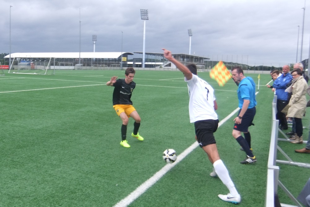 Vor 150 Zuschauern auf dem Kunstrasenplatz „Alkmaar“ konnte Sven Schaffrath auf die Dienste von Kengo Fukudome, Jannik Stevens, Bastian Müller, Florian Abel, Marvin Brauweiler und Tobias Mohr zählen, die am Vortag allesamt nicht zum Einsatz gekommen waren. Abel war es dann, der nach 18 Minuten die erste gute Gelegenheit hatte, aber an Gästekeeper Rudersdorff scheiterte. Vier Minuten später duellierten sich die beiden Protagonisten erneut und diesmal hatte der Schlussmann nach einer tollen Einzelaktion des Mittelfeldspielers keine Abwehrchance – 1:0 (22.). Rudersdorff rettete anschließend bei einem Kopfball von Wiff zunächst stark (28.), musste sich aber nur eine Minute später nach einer Freistoßkombination erneut geschlagen geben. Der von Kühnel frei gespielte Sahin versenkte die Kugel aus zwölf Metern eiskalt zum 2:0 (29.). Nachdem Kühnel mit einem Distanzschuss knapp den dritten Treffer verpasst hatte (40.), hätte eine Unachtsamkeit die Gäste kurz vor dem Pausenpfiff beinahe zurück ins Spiel gebracht. Ilk konnte nach einem schnell ausgeführten Freistoß von der Strafraumgrenze abziehen, doch de Sousa bekam die Fußspitze dazwischen und fälschte das Leder knapp über das Aachener Gehäuse ab (44.).