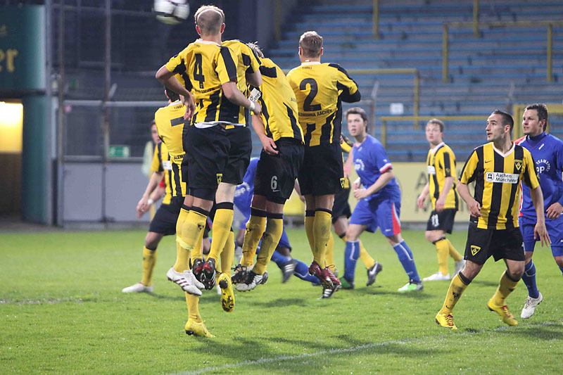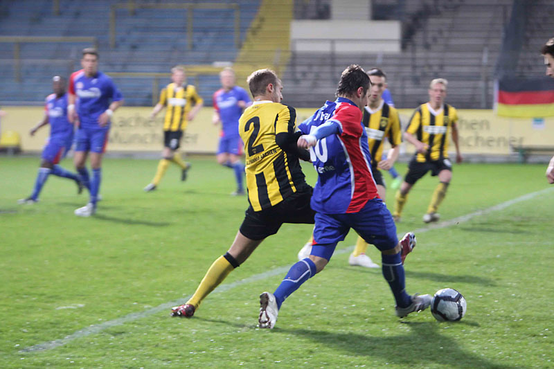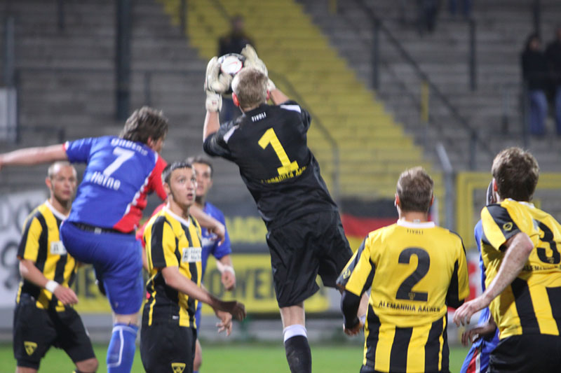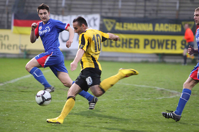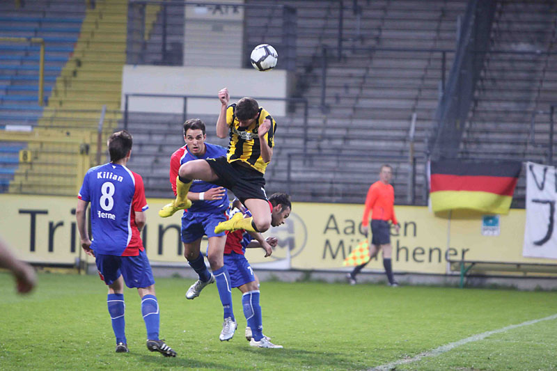 Besser machten es die Gäste acht Minuten nach dem Seitenwechsel. Einen Freistoß von Eisen konnte Tim Krumpen noch entschärfen, aber Ouro-Akpo reagierte am schnellsten und schob die Kugel zum Ausgleich über die Linie (53.). Die Tivoli-Kicker verloren daraufhin den Faden, doch auch die Gäste versäumten es, nachzulegen. Onucka (75.), Ouro-Akpo (79.) und Gebauer (80.) scheiterten am erneut glänzend aufgelegten Tim Krumpen im Aachener Gehäuse. Ein genialer Spielzug, eingeleitet von Zlatko Muhovic, brachte die Alemannen sieben Minuten vor dem Ende wieder auf die Siegerstraße. Höger legte die Kugel volley geschickt für Heber auf, der das Leder aus drei Metern nur noch zum 2:1 einzuschieben brauchte (83.). Herne gab nicht auf und wurde in der Schlussminute klassisch ausgekontert. Auf Zuspiel von Tibor Heber traf Faton Popova mit einem Lupfer nur die Latte und Daniel Engelbrecht hatte im Nachsetzen leichtes Spiel, den Schlusspunkt zum 3:1 zu setzen.