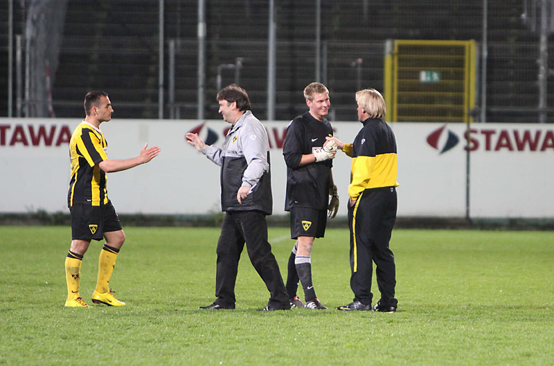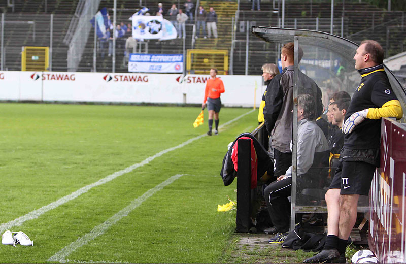 „Wir haben die Gelegenheit ausgelassen, das Spiel frühzeitig zu entscheiden“, ärgerte sich Eric van der Luer. „Am Ende hätten wir uns nicht beschweren können, wenn wir mit leeren Händen dar stehen“, traf der Coach den Nagel auf den Kopf. Bereits am kommenden Sonntag bestreiten seine Schützlinge um 15.00 Uhr das letzte Heimspiel der Saison. Gegner wird auf dem neuen Tivoli der VfB Hüls mit Weltmeister Olaf Thon an der Seitenlinie sein.