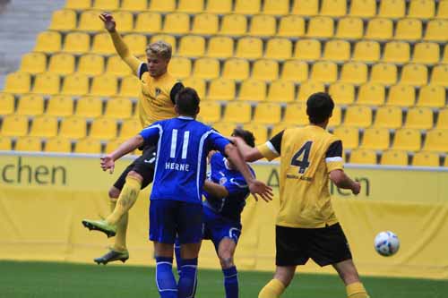 Die zweite Mannschaft der Alemannia kam am Sonntag, 09.10.2011 zu einem glanzlosen 1:0-Erfolg über den Tabellenvorletzten Westfalia Herne. Vor 321 Zuschauern erzielte Daniel Engelbrecht das Tor des Tages auf dem Tivoli.