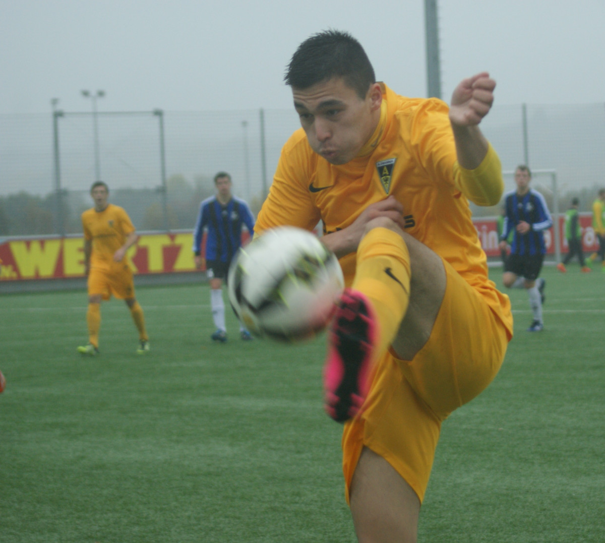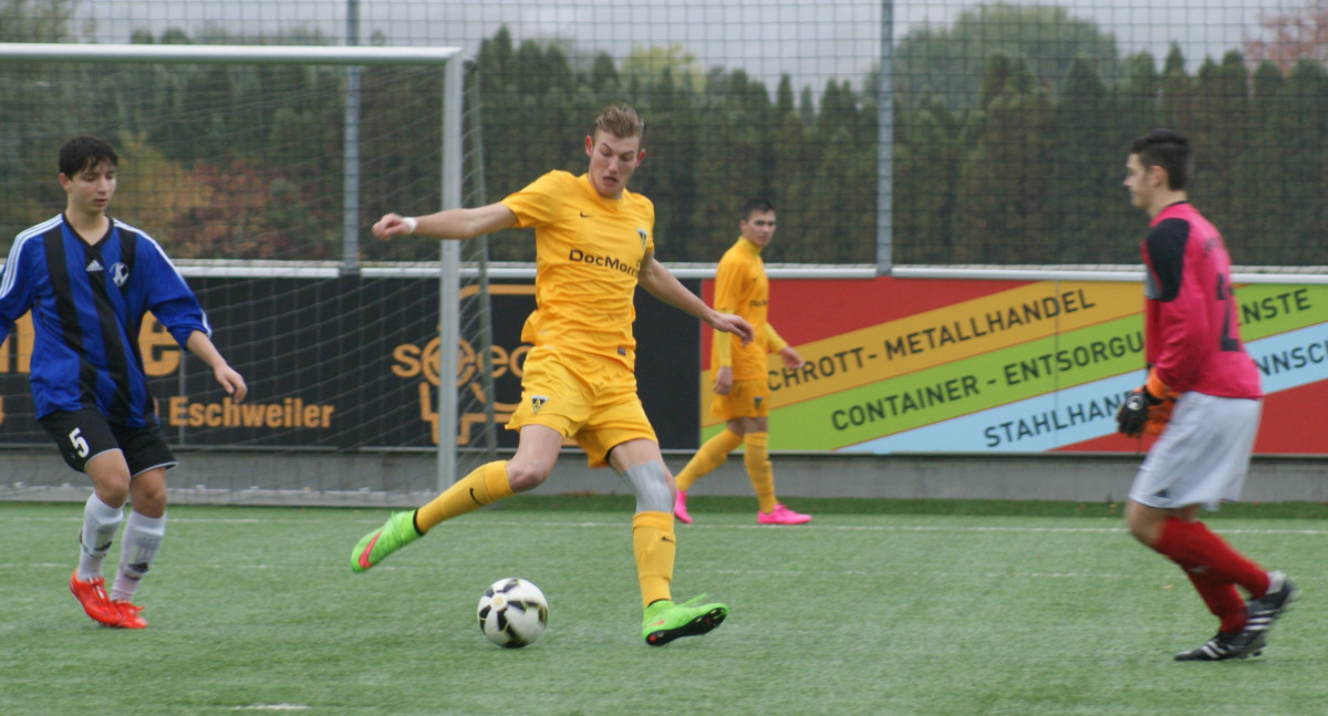 Auch im zweiten Spielabschnitt waren die Schwarz-Gelben das Spiel bestimmende Team. Nzuzi traf nach einer Freistoßflanke von Boubaker nur den rechten Pfosten (50.). Torschütze Lubishtani versäumte es mit zwei weiteren Chancen, die Partie frühzeitig zu entscheiden (64., 85.). So war bis zur letzten Sekunde höchste Wachsamkeit gefordert, um den knappen aber verdienten Erfolg über die Zeit zu bringen. Weiter geht es für die Aachener A-Junioren am kommenden Samstag, 31. Oktober 2015, mit dem Lokalderby bei Hertha Walheim. Der Anstoß beim Tabellenneunten erfolgt um 18.00 Uhr.