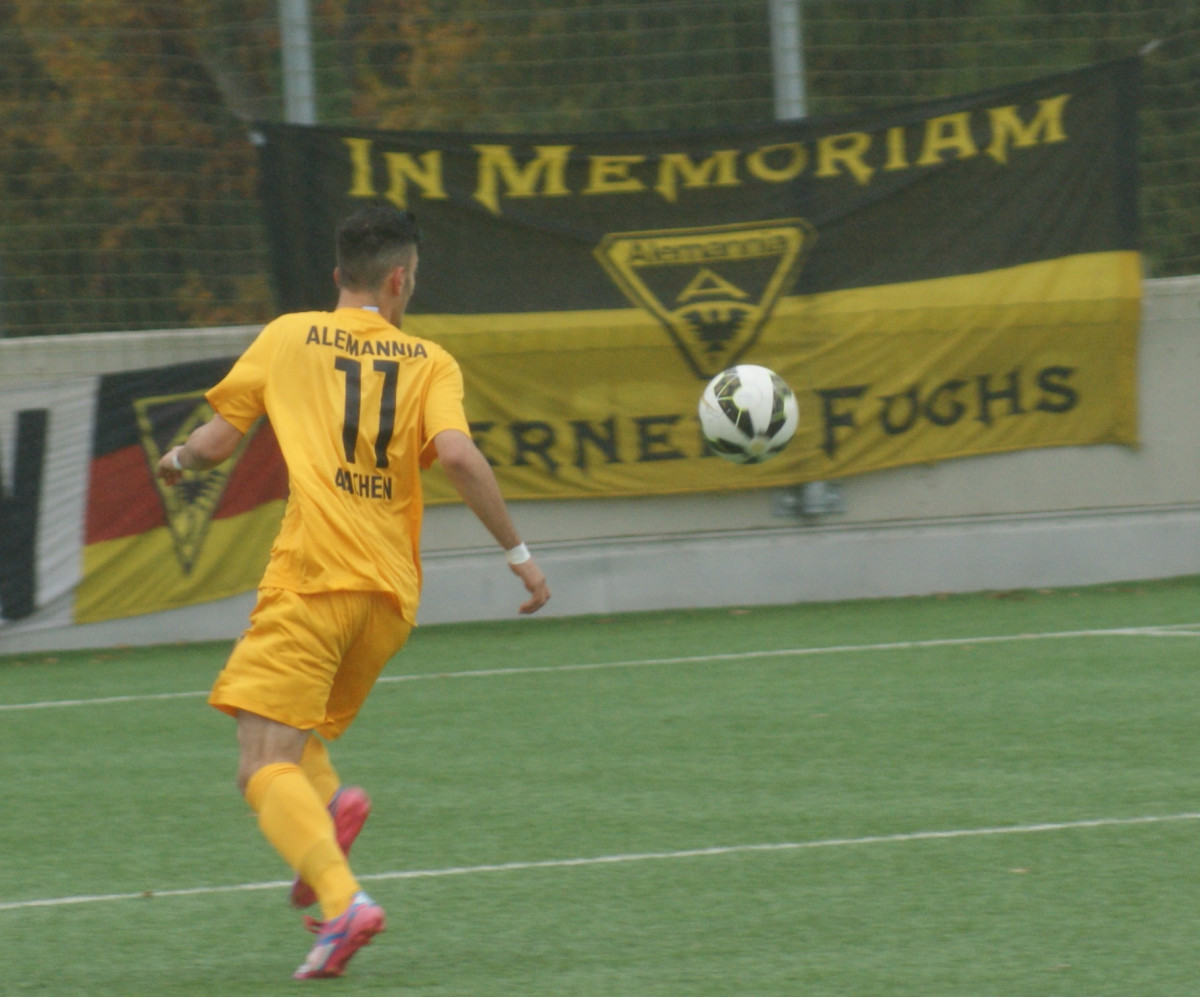 Die jungen Alemannen waren das aktivere Team und hatten nach 20 Minuten ihre ersten guten Gelegenheiten. Arslan scheiterte an Gästekeeper Pütz und Lubishtani traf aus spitzem Winkel nur das Außennetz (21.). Siegburg lauerte auf Konter, von denen einer fast zum Erfolg geführt hätte. Neumann spitzelte das Leder vorbei an Aachens Schlussmann Kirschall, aber Uhlemann konnte kurz vor der Linie klären (25.). Die verdiente Führung für den Spitzenreiter fiel in der 35. Minute. Eine Linksflanke von Arslan legte Tokmak per Kopf für Lubishtani ab, der die Kugel aus drei Metern mit seinem bereits neunten Saisontor zum 1:0 über die Linie bugsierte.