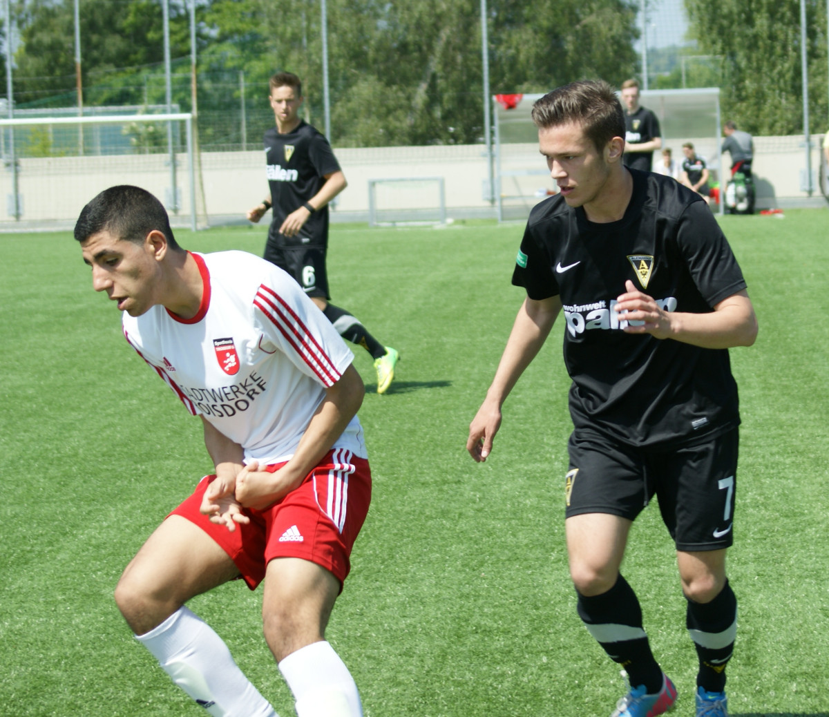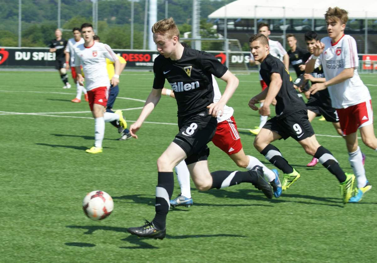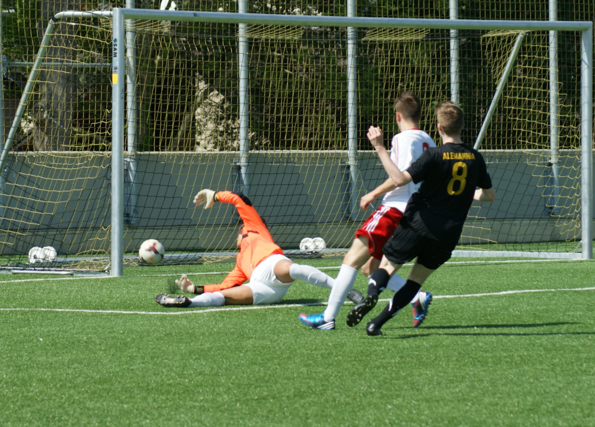Die U19 der Alemannia hält den Druck auf Tabellenführer Viktoria Köln weiter aufrecht. Am drittletzten Spieltag der A-Junioren Mittelrheinliga fegten die jungen Alemannen die Sportfreunde Troisdorf mit 15:3 (8:0) vom Kunstrasenplatz auf dem Parkhausdach am Tivoli. Da die Viktoria ihr Duell am Nachmittag gegen BW Köngisdorf mit 3:2 gewinnen konnte, beträgt der Rückstand zur Spitze weiterhin zwei Zähler.