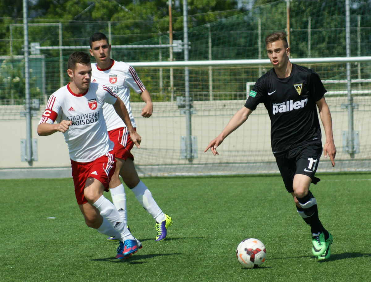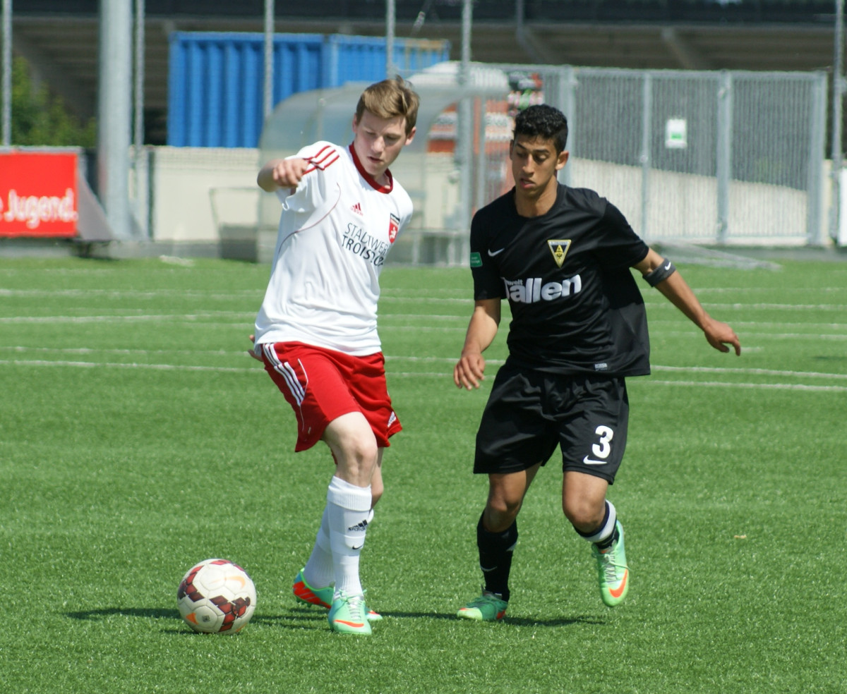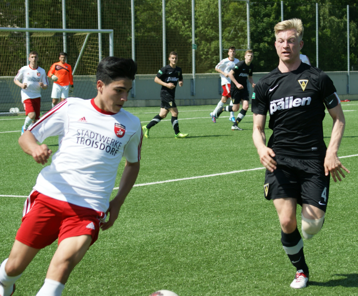 Die U19 der Alemannia hält den Druck auf Tabellenführer Viktoria Köln weiter aufrecht. Am drittletzten Spieltag der A-Junioren Mittelrheinliga fegten die jungen Alemannen die Sportfreunde Troisdorf mit 15:3 (8:0) vom Kunstrasenplatz auf dem Parkhausdach am Tivoli. Da die Viktoria ihr Duell am Nachmittag gegen BW Köngisdorf mit 3:2 gewinnen konnte, beträgt der Rückstand zur Spitze weiterhin zwei Zähler.