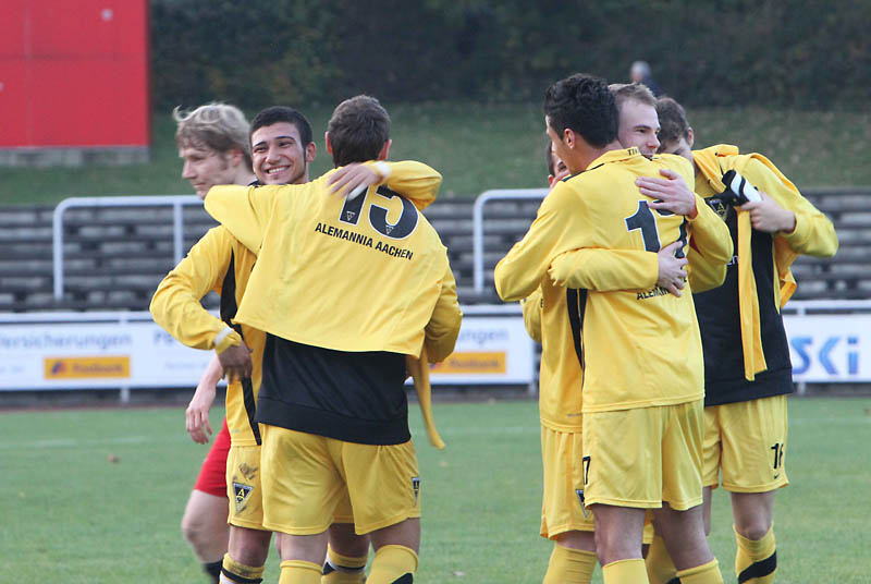 Die jungen Alemannen mussten anschließend eine kleine Drangphase der Gastgeber überstehen und schlugen genau im richtigen Augenblick zurück. Nach Vorarbeit von Lekesiz traf Wanneck mit einem Schlenzer von der Strafraumgrenze zum 1:2 in den linken Winkel und stellte die Wichen wieder auf Sieg. Die Gastgeber stemmten sich mit Macht gegen die drohende Niederlage und packten früh die Brechstange aus. Das Aachener Abwehrbollwerk hielt jedoch stand und in den Schlussminuten machten die Schwarz-Gelben den Sack eiskalt zu. Engelbrecht schüttelte drei Bewacher ab und traf zum 1:3 (87.). Zwei Minuten später wurde Demir frei gespielt und versenkte die Kugel abgezockt zum 1:4 (89.), ehe Daniel Engelbrecht den Schlusspunkt setzte. Nach einem Ballverlust der Gastgeber umkurvte der Torjäger vom Dienst Schlussmann Forsbach und schob zum 1:5-Endstand ein (90.).