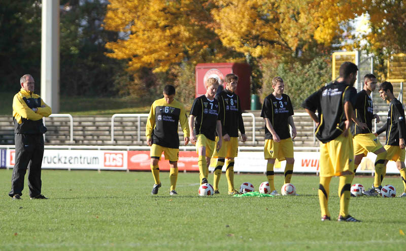 Mit Henrik Ojamaa tauchte nur ein Spieler aus dem Lizenzspielerkader auf dem Spielberichtsbogen auf. Narciso Lubasa hingegen wurde am Sonntagmorgen kurzfristig für das Profiaufgebot nominiert und trat die Reise ins Bergische daher nicht an. Die Tivoli-Kicker fanden gut ins Spiel und kamen durch Schnier (2.) und Wanneck (18.) zu ersten Möglichkeiten. Nach einer guten halben Stunde war die Aachener Führung daher auch nicht unverdient. Ojamaa setzte nach einem Ballverlust energisch nach und der Abpraller fiel genau vor die Füße von Gökhan Lekesiz. Der kramte sich das Leder 18 Meter vor dem Tor zu recht und ließ 09-Keeper Forsbach mit einem Schuss in rechten Winkel keine Abwehrchance – 0:1(34.). Die Tivoli-Kicker gingen zum sechsten Mal in Folge ohne Gegentor in die Kabine, waren aber nach dem Seitenwechsel erneut nicht präsent und mussten nach nur vier Minuten den Ausgleich hinnehmen. Ein 30-Meter-Freistoß von Ayranci aus dem rechten Halbfeld senkte sich vorbei an Freund und Feind ins lange Eck – 1:1 (49.). „Wir sind extra früher aus der Kabine gegangen und haben die Spieler auf dem Platz noch mal heiß gemacht“, kann Ralf Aussem sich das Schlafmützigkeits-Phänomen seiner Mannschaft nicht erklären.