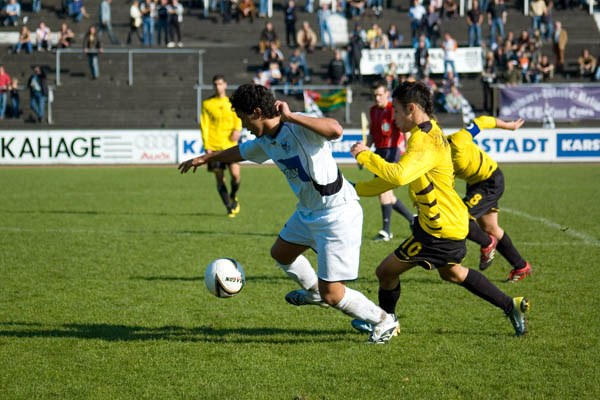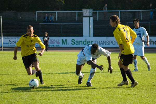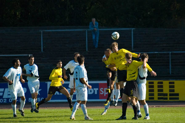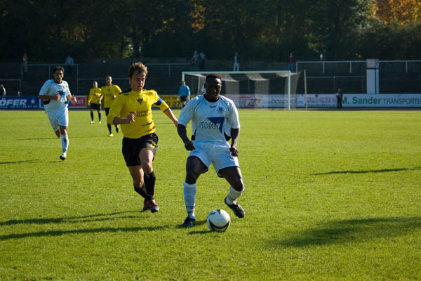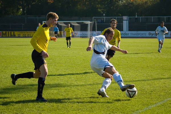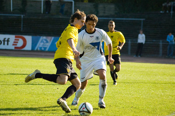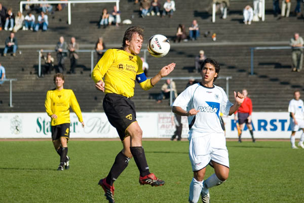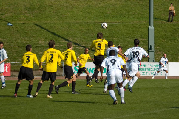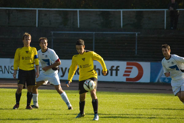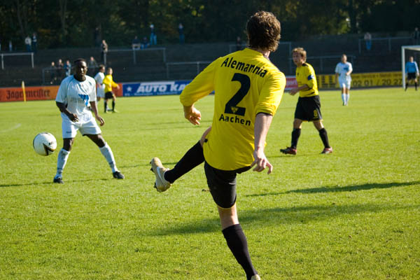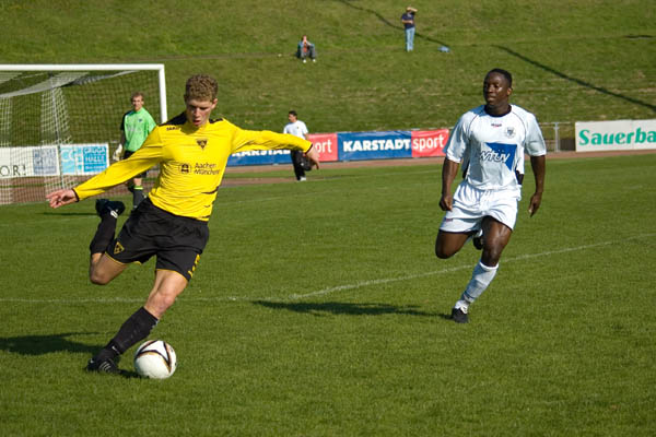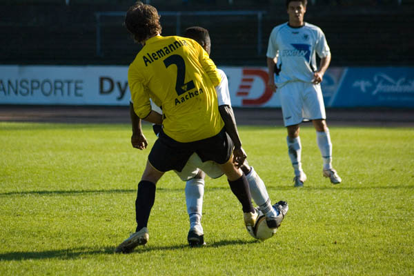Die offensive Ausrichtung hätte sich nach 10 Minuten beinahe bezahlt gemacht, als Gümüstas mit einer Direktabnahme nach Vorarbeit von Amachaibou eine frühe Aachener Führung nur knapp verfehlte. Danach war der Ligaprimus am Zug. Doch das gefährliche Sturmduo um den togolesischen Nationalspieler Ouro-Akpo und Ex-Profi Sascha Wolf fehlte bei vier guten Möglichkeiten bis zur Pause entweder die nötige Präzision im Abschluss oder sie fanden im starken Aachener Keeper David Hohs ihren Meister.