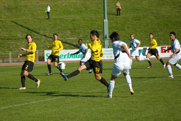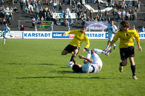 Einziges Manko der jungen Alemannenelf an diesem Nachmittag war die fehlende Kaltschnäuzigkeit bei den sich in der Schlussphase nahezu zwangsläufig ergebenden Konterchancen. Alleine in den letzten 10 Minuten rannten die Tivoli-Kicker viermal in Überzahl auf das ETB-Gehäuse, versäumten es aber jedes Mal, den Sack vorzeitig zuzumachen. Um ein Haar hätten sich die Schwarz-Gelben durch ihre Abschlussschwäche (nur sieben Treffer in elf Spielen) noch um den verdienten Lohn gebracht, doch Kaiser stand bei einem Schuss des eingewechselten Katriniok vier Minuten vor dem Ende goldrichtig und konnte den Ball auf der Linie mit der Brust abwehren. Auch beim dritten Saisonerfolg der Hengen-Elf wurden die Nerven des Anhangs bis in die Nachspielzeit auf die Folter gespannt…