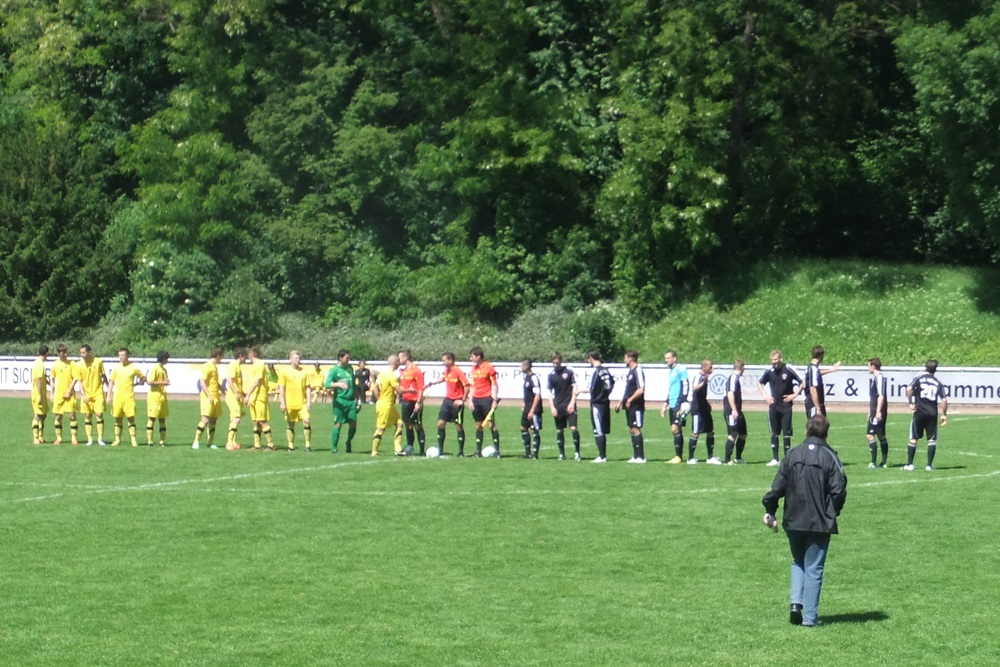 In einer ereignisarmen ersten Hälfte prüfte zunächst Fabio Dell'Era Torwart Marcel Simon mit einem Flachschuss aus 20 Metern (19.). Nach einem Zweikampf zwischen Michael Schmitz und Tim Lünenbach forderten die Gastgeber vehement aber erfolglos Elfmeter (35.). Auf der anderen Seite schlug Jeffrey Eshun nach Anspiel von Rafael Garcia eiskalt zu und ließ Torwart Petrov aus 12 Metern keine Chance - 0:1 (38.). Einen halbhohen Schuss von Maxim Philippe konnte der Keeper hingegen sicher halten (45.).