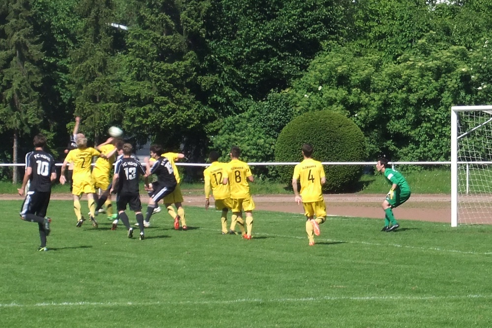 Am vorletzten Spieltag der Mittelrheinliga musste die Alemannia beim bereits als Absteiger feststehenden FC Hürth antreten. Jeffrey Eshun brachte die Tivoli-Kicker, im ersten Durchgang in Führung, Yousef Keshta glich sieben Minuten vor Schluss zum 1:1-Endstand aus.