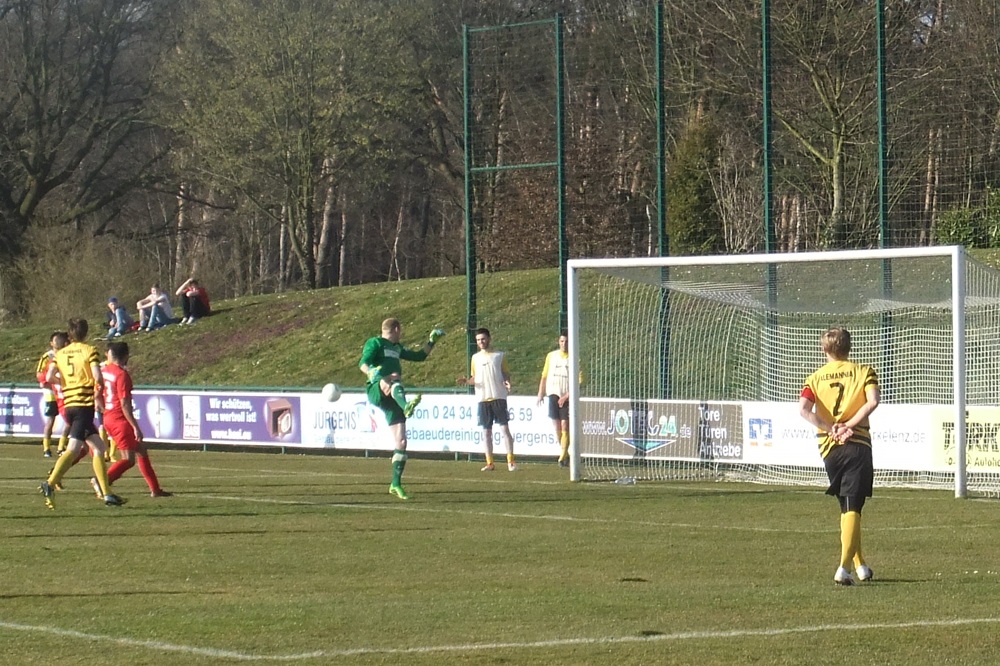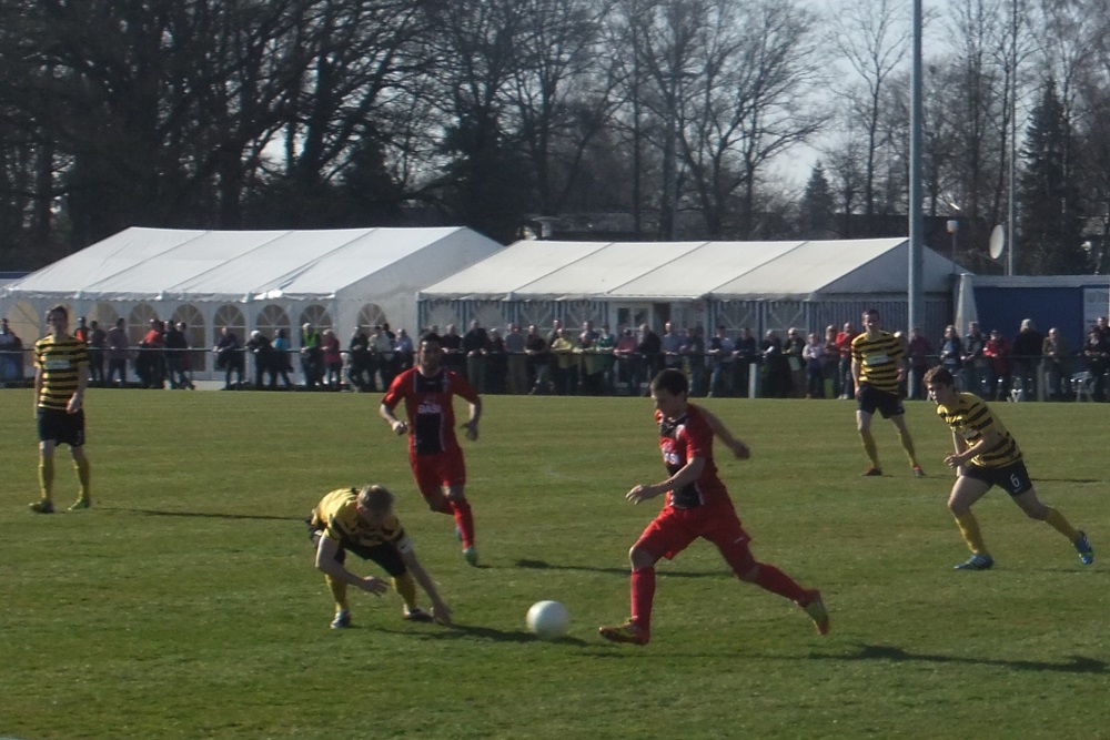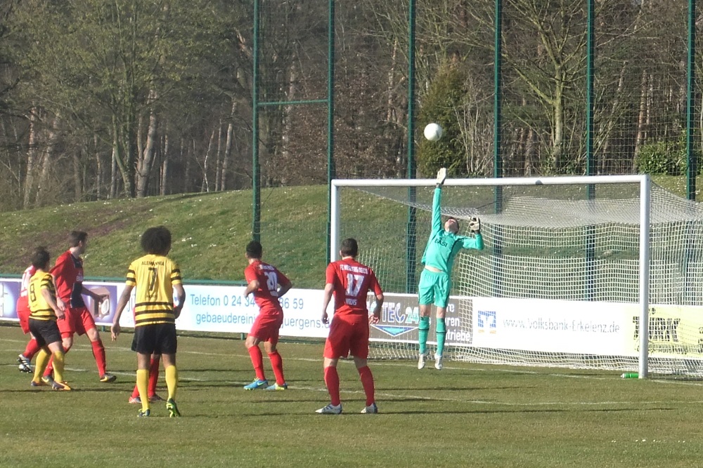 Die zweite Mannschaft der Alemannia ist mit einer Niederlage in die Rückrunde gestartet. Beim Spitzenreiter FC Wegberg-Beeck verloren die Schwarz-Gelben am Sonntag, 9. März 2014, mit 1:3 (0:2). Bereits nach sechs Minuten mussten die Alemannen zwei Gegentreffer hinnehmen. Der Anschlusstreffer durch Tobias Arens war lediglich noch Ergebniskosmetik.