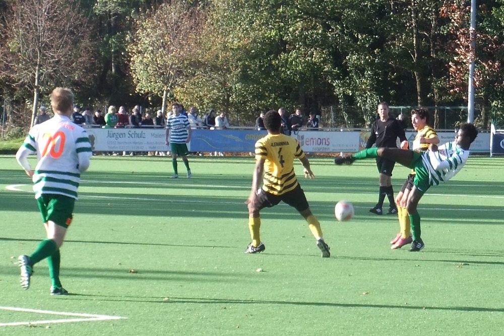 Nach dem Wechsel waren keine zwei Minuten gespielt, als Sebastian Tkacz den Ball von der linken Seite nach innen brachte, Nico Dautzenberg mit einer Volleyabnahme zunächst am Torwart scheiterte, aber im Nachsetzen zum 0:2 erfolgreich war (47.). Die Bemühungen der Gastgeber, dem Spiel eine Wende zu geben, erhielten durch die gelb-rote Karte von Maier nach wiederholtem Foulspiel einen zusätzlichen Dämpfer (60.). Mit einem Heber aus 25 Metern über den weit herausgeeilten Luft sorgte wieder Dautzenberg für die Entscheidung (69.). Während bei der Alemannia Felix Korb und Tom Moosmayer zu ihren ersten Einsätzen in der Mittelrheinliga kamen, verpassten die Gastgeber kurz vor Schluss den Ehrentreffer, als Mikito Ito reaktionsschnell gegen den völlig freistehenden Florian Koehler rettete (89.).