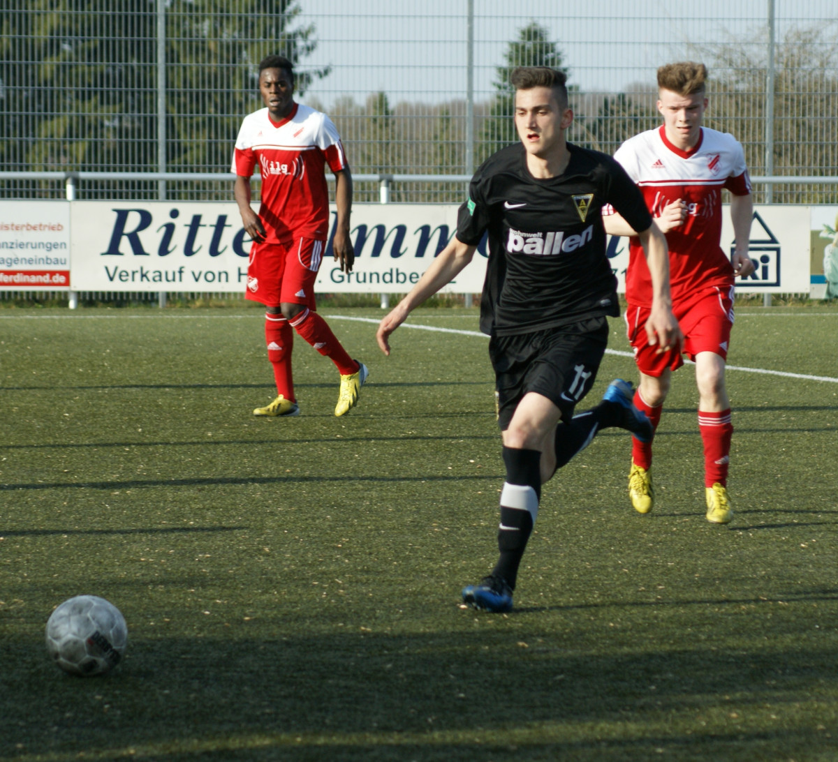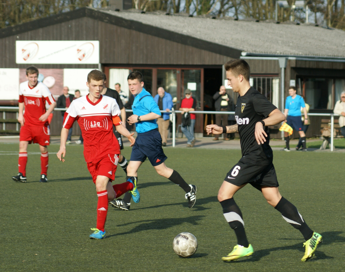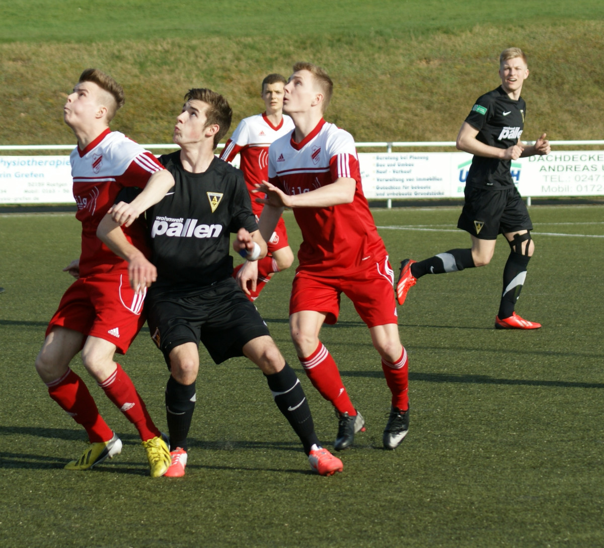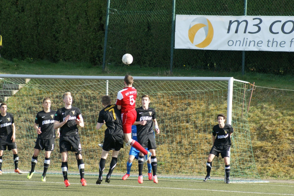 Im Lokalderby beim SV Rott hat sich die U19 der Alemannia am Samstag, 29. März 2014, mit 2:1 (0:1) durchsetzen können. Das Team von Kai-Uwe Kallenbach festigte damit den dritten Tabellenplatz und liegt weiter in Lauerstellung auf den Spitzenreiter Viktoria Köln, der zwei Punkte mehr auf der Habenseite hat.
