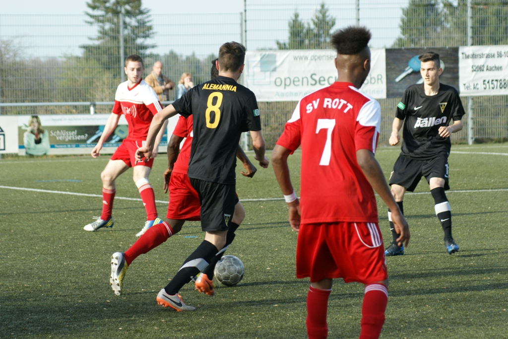 Mit Evertz, Uhlemann und Lubishtani kamen insgesamt drei Akteure aus der am Wochenende spielfreien U17 der Alemannia zum Einsatz. Die Tivoli-Kicker kontrollierten das Spiel und kamen früh zu ersten Torgelegenheiten. Marx stellte den Spielverlauf nach 16 Minuten allerdings auf den Kopf und erzielte das 1:0 für Rott, mit dem es auch in die Halbzeitpause ging.