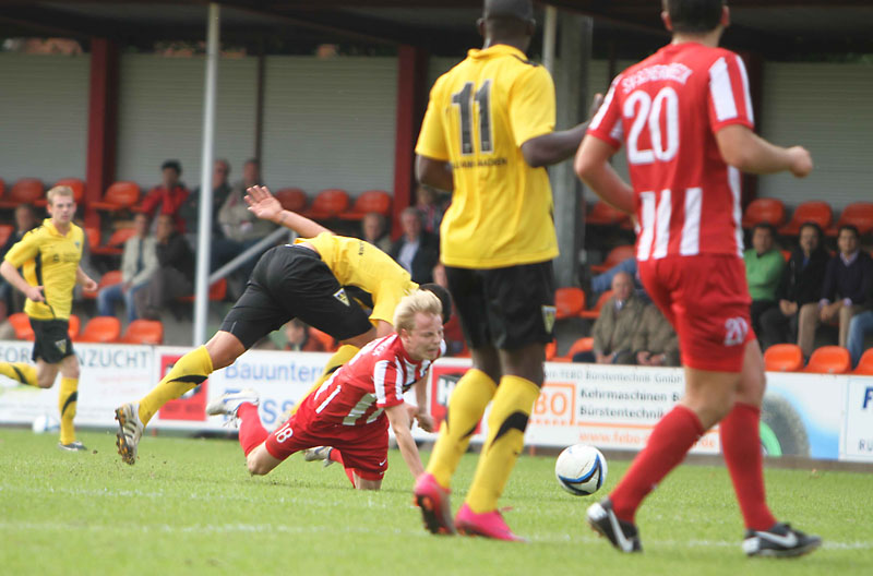 Alemannia Aachen II: Krumpen, Casper, Frau (79. Malget), Jansen, Korte, Lekesiz, Schnier (63. Lubasa), Temeltas, Wanneck (68. Mostowfi), Engelbrecht, Tsoumou / Trainer: Ralf Aussem
