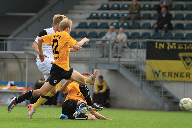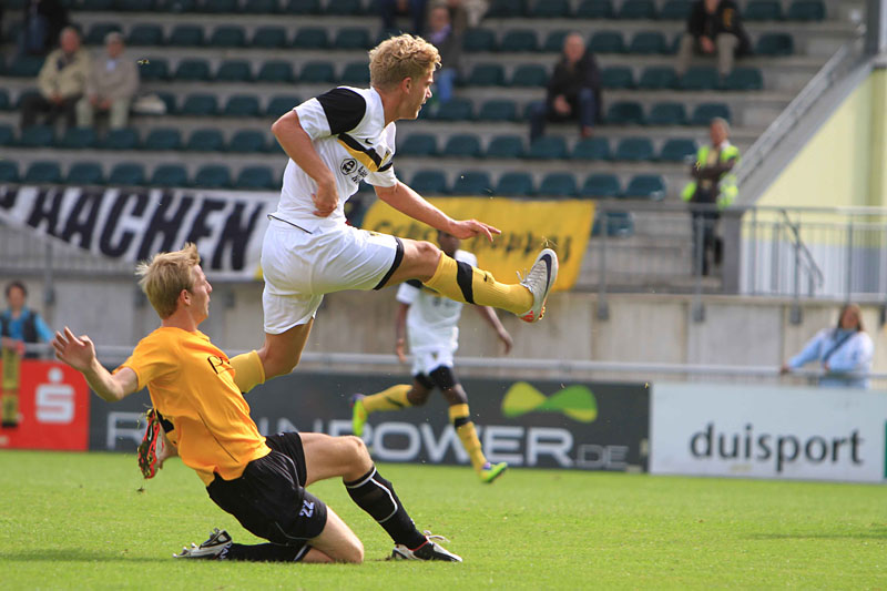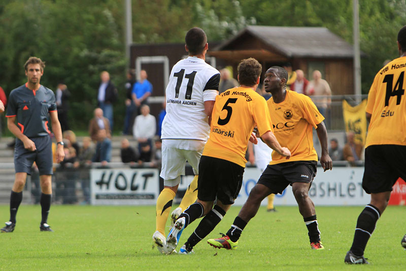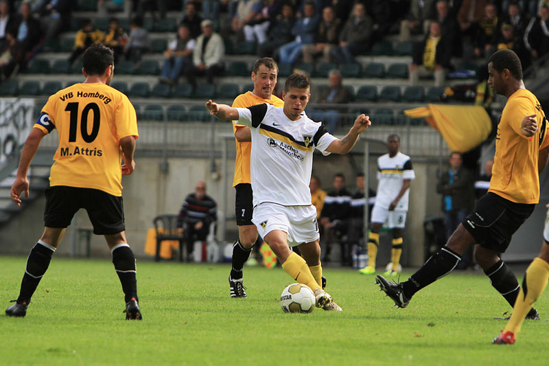 Auch nach dem Seitenwechsel waren die Tivoli-Kicker spielerisch die klar überlegene Mannschaft. Nach einem Doppelpass mit Denis Pozder hatte Sascha Marquet die Homberger Hintermannschaft ausgehebelt, schob die Kugel jedoch knapp links vorbei (55.). Begünstigt durch ein weiteres Abstimmungsproblem in der Aachener Abwehr wäre der Schuss zehn Minuten später beinahe ein zweites Mal nach hinten losgegangen. Milaszewski tauchte frei vor Hohs auf, doch der Aachener Keeper konnte das Duell für sich entscheiden (65.). Die Schützlinge von Ralf Aussem agierten vor dem gegnerischen Tor anschließend nicht konsequent genug und kamen nur noch zu einer nennenswerten Chance. Sieben Minuten vor dem Ende hämmerte Lubasa die Kugel aber aus spitzem Winkel nur ans Außennetz.