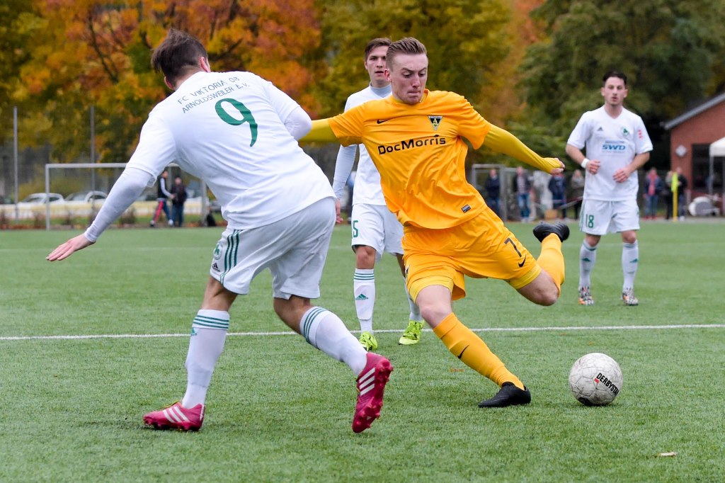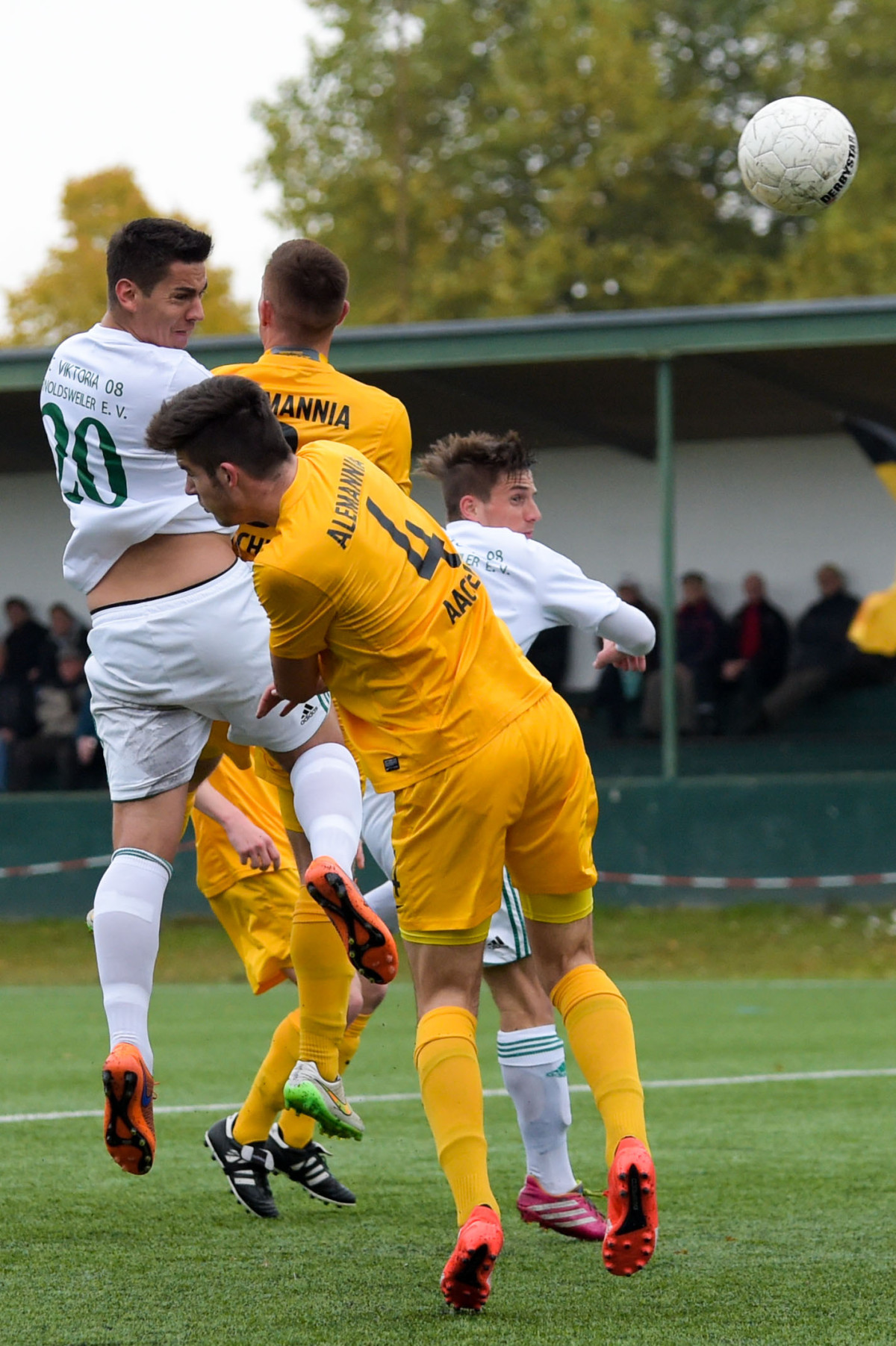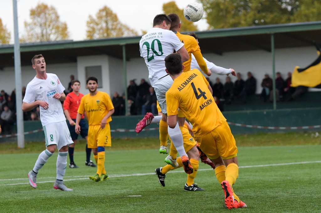 Vor rund 250 Zuschauern im Bertram-Möthrath-Stadion trafen zwei selbstbewusst auftretende Teams aufeinander. Die Gastgeber hatten aus den letzten vier Begegnungen zehn Zähler sammeln können und bei der Alemannia kamen wie beim 3:0-Erfolg in der Vorwoche sechs Akteure aus dem Regionalliga-Kader zum Einsatz. In der 16. Minute hatten die zahlreich mitgereisten Aachener Anhänger erstmals den Torjubel auf den Lippen. Nach einer Rechtsflanke Cetin kam Gödde gleich zweimal zum Kopfball, doch Viktoria-Keeper Ahrens rettete beide Male reaktionsstark. Dann hatte Mohr aus 14 Metern freie Schussbahn. Am langen Pfosten rutschte Hasani knapp am Ball vorbei (25.). Kurz vor dem Seitenwechsel schlug Lünenbach eine Flanke von der linken Seite auf den langen Pfosten, wo Ito volley abzog. Ahrens bewahrte die Hausherren mit einem sensationellen Reflex vor einem Rückstand (43.). Eine Minute später wurde ein Schuss von Gerhards im letzten Moment abgeblockt (44.).