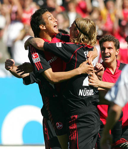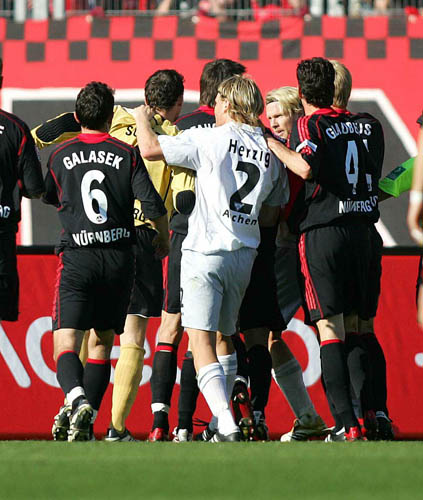 1. FC Nürnberg: Beauchamp, Engelhardt, Galasek, Kristiansen (85. Paulus), Pagenburg (78. Banovic), Pinola, Polak (69. Glauber), Saenko, Schäfer, Schroth, Wolf / Trainer: Hans Meyer