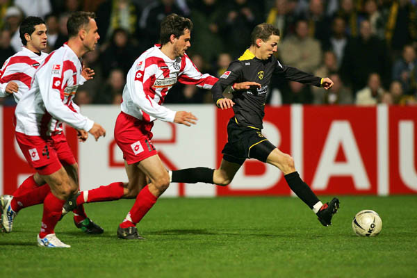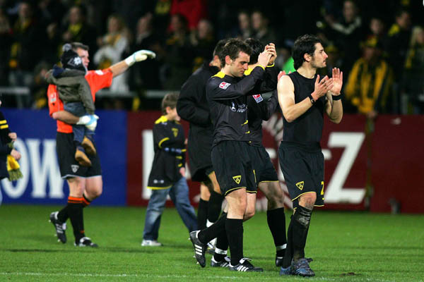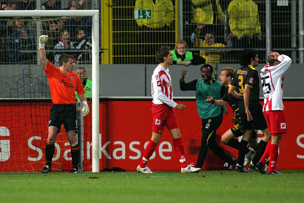 Die Alemannia hat gegen den direkten Konkurrenten Mainz 05 mit 2:1 (0:1) gewonnen. Die Schwarz-Gelben konnten nach einer schwachen ersten Hälfte das Spiel mit einem Doppelschlag nach der Pause noch drehen. Mohamed Zidan hatte die Gäste nach 14. Minuten in Führung gebracht. Nach dem Wechsel kam mit der Einwechslung von Laurentiu Reghecampf die Wende: Der Rumäne bereitete mit seinen Freistößen beide Treffer durch Jan Schlaudraff und Vedad Ibisevic vor. Stephan Straub wurde zum Held des Abends, als er acht Minuten vor dem Ende einen Strafstoß parierte.