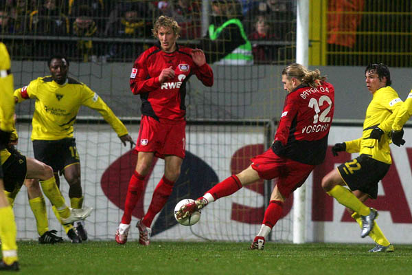 Die Schwarz-Gelben drängten jetzt auf den Ausgleich und Leverkusen in die eigene Hälfte. Leverkusen konnte sich jedoch schnell befreien und kam durch Barbarez zur nächsten guten Möglichkeit: Sein Schuss ging vorbei an Straub, doch wieder stand Pinto goldrichtig und kratzte das Leder von der Linie (64.). Das Spiel war jetzt hart umkämpft und beide Mannschaften kamen zu Möglichkeiten. Auf Aachener Seite scheiterte Ebbers nur knapp am starken Butt (65.). Um noch mehr Druck zu entwickeln wechselte Michael Frontzeck zum ersten Mal aus: Sascha Rösler stand nach gut zwei Monaten Zwangpause wieder bei einem Profispiel auf dem Platz. Fiel, der viel gerackert hatte, ging raus. Nur fünf Minuten später wechselte der Coach erneut. Für Pinto kam Sascha Dum. Es dauerte nicht lange bis die Maßnahme fruchtete: Juan legte den Ball unfreiwillig Ebbers auf, der direkt abzog. Der Stürmer ärgerte sich zu Recht, als der Ball haarscharf am Pfosten vorbeischrammte (73.).