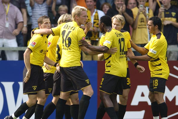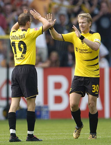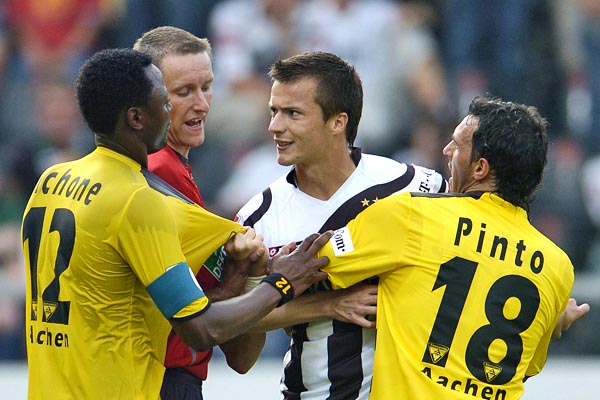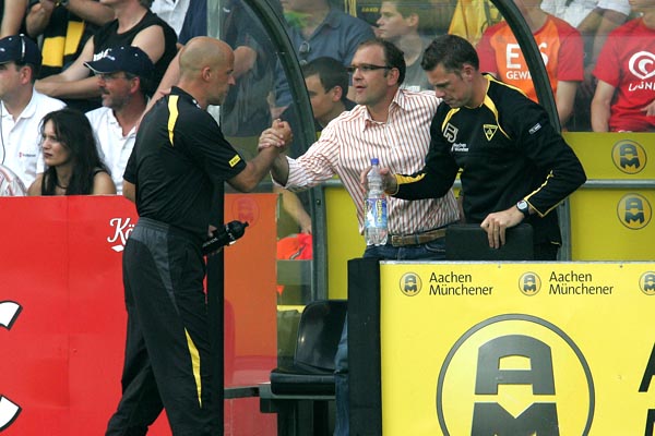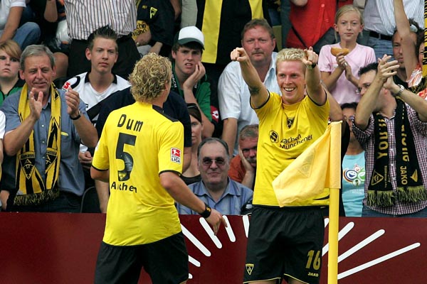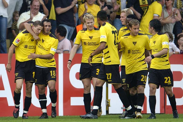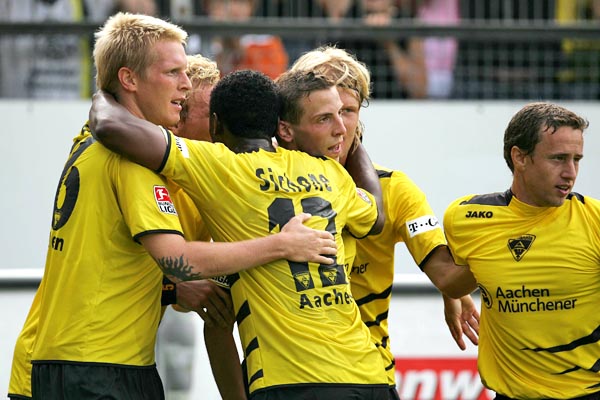 Alemannia Aachen: Dum (75. Noll), Ebbers, Herzig, Leiwakabessy, Nicht, Pinto, Plaßhenrich (87. Heidrich), Reghecampf (82. Lehmann), Rösler, Schlaudraff, Sichone / Trainer: Michael Frontzeck