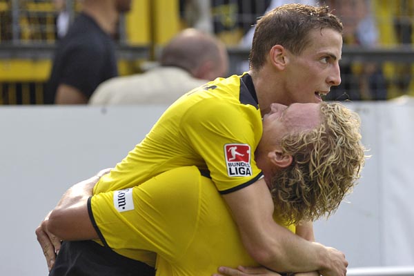 In der 31. Minute dann der hoch verdiente zweite Treffer für das Team von Michael Frontzeck. Leiwakabessys weite Flanke legte Ebbers im Strafraum auf Schlaudraff ab, der den Ball im Tor der Borussen unterbringen konnte. Mönchengladbach hatte in dieser Phase des Spiels nichts dagegen zu halten. In der 40. Minute kam Gladbach im Stile einer Handballmannschaft an den Aachener Sechzehner. Da hier jedoch kein Durchkommen war versuchte es Eugen Polanski aus der zweiten Reihe - sein Schuss ging jedoch weit übers Tor. In den Schlussminuten der ersten Hälfte schalteten die Schwarz-Gelben einige Gänge zurück ohne Mönchengladbach die Möglichkeit zu geben, gefährlich zu werden.