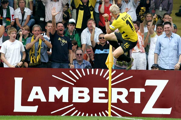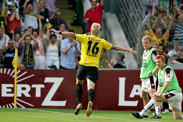 Doch die Alemannia ließ sich vom Gegentreffer nicht beeindrucken und legte nur eine Minute später nach. Eine schöne Flanke von Schlaudraff wuchtete Marius Ebbers ins Tor der Borussen und stellte den alten Abstand wieder her. Zehn Minuten lang passierte nichts. Danach behauptete Rösler einen langen Abschlag von Kristian Nicht und zog aus 20 Metern einfach mal ab. Gladbachs Keeper Keller hatte mit dem Schuss jedoch keine Probleme. Im Gegenzug stand wieder Nicht im Mittelpunkt. Nachdem sich Neuville im Strafraum durchgesetzt hatte und den Ball auf Fünfer zurückspielte, konnte der Aachener Keeper den Schuss von Kahe sicher entschärfen (63.). In der 67. Minute ging Borussen-Trainer Jupp Heynckes dann volles Risiko. Stürmer Vaclev Sverkos kam für Mittelfeldmann Hassan El Fakiri. Trotz der Überlegenheit kamen die Gladbacher zu keinen nennenswerten Chancen - die lagen auf Seiten der Schwarz-Gelben. In der 71. Minute missglückte Ebbers ein Fallrückzieher nach Flanke des agilen Schlaudraff. Den Abpraller setzte Dum in die Wolken. Kurz darauf ging der überragende Mann für Emil Noll vom Platz. Gladbach war jetzt deutlich öfter im Ballbesitz jedoch ohne daraus Kapital zu schlagen.