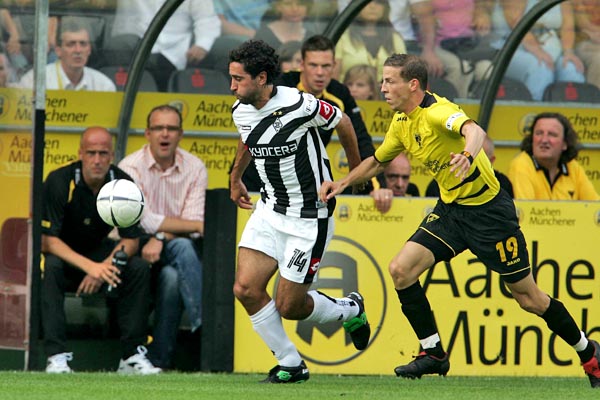 Gladbach ist mit sechs Punkten in die neue Saison gestartet. Zwei Heimsiege (Cottbus und Bielefeld) stehen einer Auswärtsniederlage (Nürnberg) gegenüber. Vor den Aachenern und speziell ihren Fans hat Jupp Heynckes enormen Respekt. „Man muss Hochachtung vor den Aachenern haben, da scheint gute Arbeit gemacht worden zu sein. Es wird ein ganz enges Spiel und uns erwartet ein heißer Tanz“, fürchtet der Borussia-Coach den engen Tivoli. „Der Tivoli bietet das Ambiente wie englische Stadien. Da ist jedes Spiel wie ein Pokalspiel“ zeigt der Gladbacher Trainer Respekt vor dem Hexenkessel Tivoli. Wieder mit dabei sein wird der deutsche Nationalstürmer Oliver Neuville, der nach überstandener Achillessehnenverletzung wieder ins Mannschaftstraining eingestiegen ist.