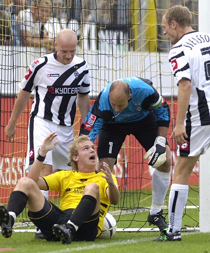 Bor. Mönchengladbach: Bögelund, Demme, El Fakiri (67. Sverkos), Insua (46. Johannes van den Bergh) (46. Rump), Jansen, Kahe, Keller, Kirch, Polanski, Svensson, Ze`Antonio / Trainer: Jupp Heynckes