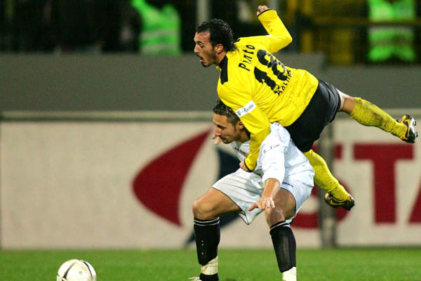 In den ersten Minuten entwickelte sich eine schnelle Partie, in der beide Mannschaften den direkten Weg nach Vorne suchten. Die Alemannia hatte die größeren Spielanteile, konnte vor dem Frankfurter Tor noch nicht entscheidend gefährlich werden. In der sechsten Minute stand Jan Schlaudraff zum ersten Mal frei vor Keeper Pröll - wurde aber zu Recht von Schiedsrichter Meyer wegen Abseits zurückgepfiffen. Die Alemannia machte jetzt Druck: Matthias Lehmann konnte sich im Mittelfeld behaupten und bediente Pinto im Strafraum. Im Fallen brachte er den Ball jedoch nicht mehr gefährlich aufs Tor (8.). Frankfurt stand jetzt tief in der eigenen Hälfte und musste sich gegen die Angriffe unserer Mannschaft wehren. In der elften Spielminute war es wieder einmal Pinto der für Akzente sorgte: Sein Freistoß von knapp hinter der Mittellinie flog in den Strafraum der Frankfurter. Weder Freund noch Feind kam an den Ball, so dass der Ball nur Zentimeter am rechten Torpfosten vorbeiging.