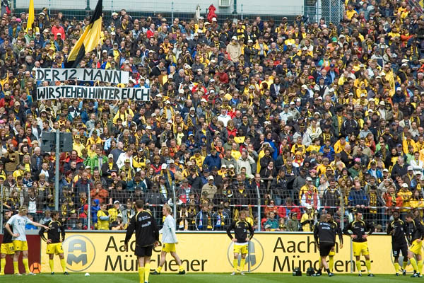 Trotz eines großen Kampfes gelingt es der Alemannia nicht, eine 2:0-Führung über die Zeit zu bringen. Da das Torverhältnis unseres Mannschaft im Vergleich mit den anderen Teams zu schlecht ist, ist auch ein Sieg in Hamburg bei einem Versagen der Konkurrenz ohne Wert. So muss die Alemannia nach einem tollen Jahr in der 1. Bundesliga nun wieder absteigen. Dennoch können Fans und Mannschaft stolz auf diese Spielzeit sein. Nächste Woche geht es zum Saisonabschluss nach Hamburg.