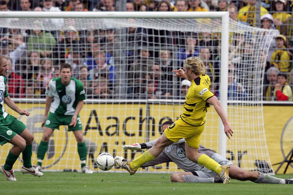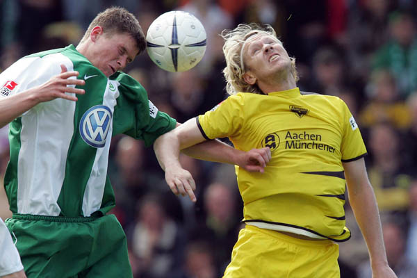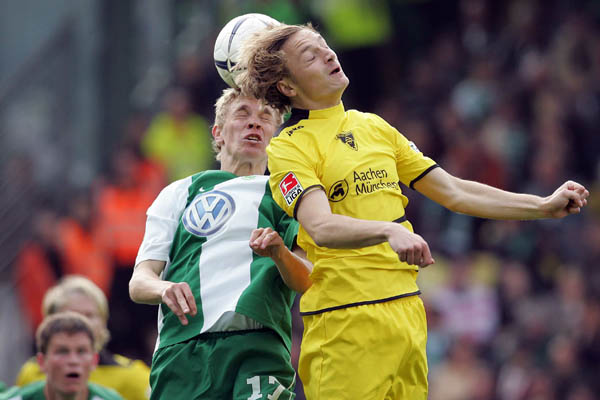 Wolfsburg kam jetzt besser ins Spiel und die Alemannia konnte sich bei Keeper Hesse bedanken, der das 0:0 festhielt. Eine Flanke kam in den Aachener Strafraum und Klimowicz schoss sofort aus der Drehung. Mit einer tollen Reaktion fischte er das Leder aus dem rechten Eck (57.). Nur drei Minuten später erneut die „Wölfe“: Nach einem Doppelpass flankte Marcelinho gefährlich in die Mitte. Sichone passte aber auf und rettete per Grätsche, so dass Hesse den Ball abnehmen konnte (60.).