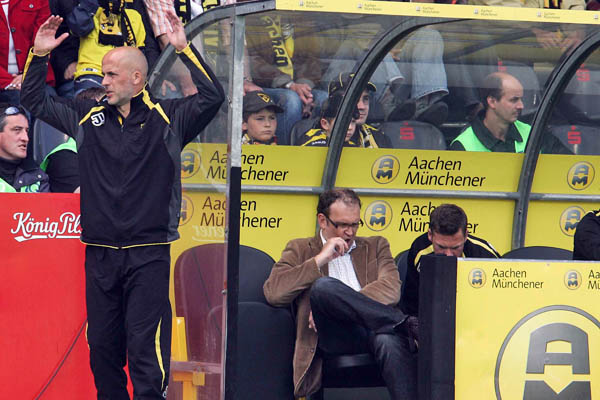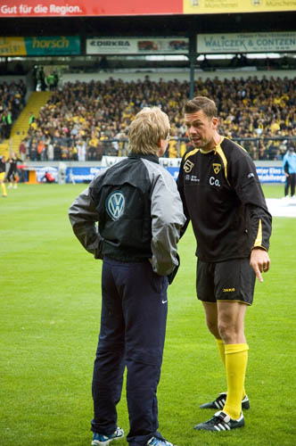 Nach der Niederlage gegen Eintracht Frankfurt musste Michael Frontzeck die Startelf auf fünf Positionen verändern: Da Kristian Nicht mit einer Magen-Darm-Infektion passen musste, sprang der dritte Keeper Marcus Hesse kurzfristig ein. Für die gesperrten Nico Herzig (5. gelbe Karte) und Alexander Klitzpera (Rote Karte) sowie Matthias Heidrich und Vedad Ibisevic rückten Moses Sichone, Mirko Casper, Cristian Fiel und Marius Ebbers ins Team. Somit wollten die Schwarz-Gelben mit einem taktischen „4-4-2“-System drei Punkte holen: Vor Marcus Hesse spielten Moses Sichone und Thomas Stehle in der Innenverteidigung - auf den Außen Mirko Casper und Jeffrey Leiwakabessy. Die Raute im Mittelfeld bildeten Matthias Lehmann, Laurentiu Reghecampf, Cristian Fiel und Sergio Pinto. Im Sturm standen Marius Ebbers und Sascha Rösler auf dem Platz. Erstmals seit Monaten war Szilárd Nemeth wieder im Kader. Auf der Gegenseite änderte „Wölfe“-Coach Klaus Augenthaler sein Team nicht. Mit vier Abwehrspielern in der Viererkette, vier Mittelfeldakteuren in einer Raute sowie zwei Stürmern wollte das Team aus Niedersachsen den Klassenerhalt in Aachen perfekt machen.