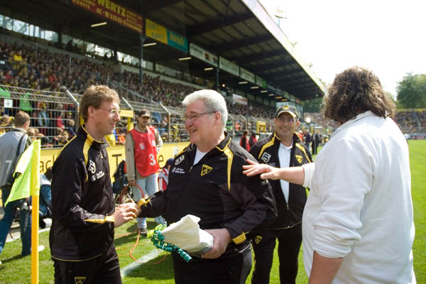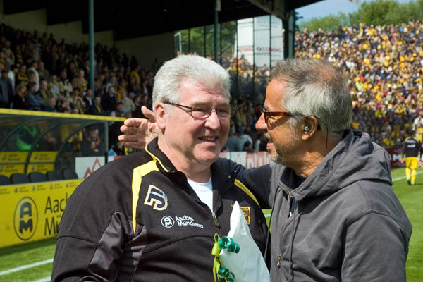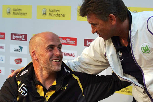 Michael Frontzeck: Meine Mannschaft hat heute am Limit gespielt und alles gegeben. Sie hat das Spiel in 80 Minuten hervorragend vorbereitet. Danach wurden wir etwas nachlässig und die Chancen, die sich den Wolfsburgern geboten haben, haben sie eiskalt ausgenutzt. Das Ergebnis ist natürlich sehr bitter für uns. Die Mannschaft hat alles versucht die letzte Chance in Hamburg wahr zu nehmen, aber es hat nicht sollen sein. Nichtsdestotrotz denke ich, dass sich Alemannia in dieser Saison gut präsentiert hat. Auf Grund der Tatsache, dass die Alemannia stabile Strukturen hat, wird es nicht erneut 36 Jahre dauern, bis der Klub in die erste Liga aufsteigt.