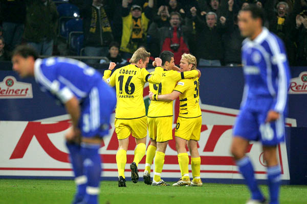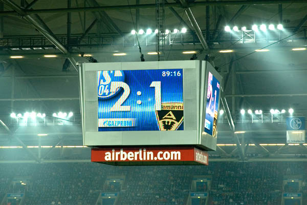 Die Alemannia hat ihr erstes Gastspiel in der Arena AufSchalke knapp und unglücklich mit 1:2 verloren. Vor 61.482 Zuschauern brachte Vedad Ibisevic die Schwarz-Gelben zunächst in Führung. Durch einen Handelfmeter, den Rafinha verwandelte, kam Schalke jedoch wieder ran. Eine Viertelstunde vor Schluss lenkte Moses Sichone eine scharfe Flanke zum Endstand unglücklich ins eigene Tor.