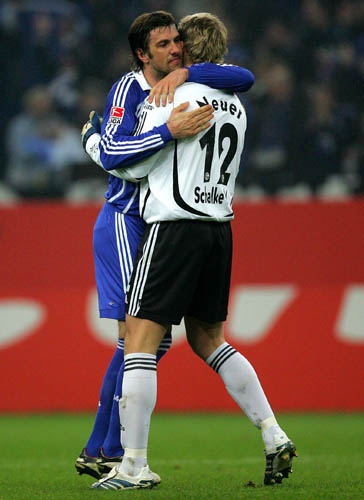 Frontzecks Gegenüber Mirko Slomka kann am Mittwochabend fast aus dem Vollen schöpfen. Außer Christian Pander, der sich im Abschlusstraining vor dem Frankfurt-Spiel einen Bänderriss im Sprunggelenk zuzog, kann der Schalke-Trainer auf den Erfolgskader der letzten Wochen zurückgreifen. Auch Levan Kobiashvili und Fabian Ernst, die beide wegen Zehenproblemen am Montag mit dem Training aussetzten, stehen dem Coach für das Spiel gegen Alemannia Aachen zur Verfügung.