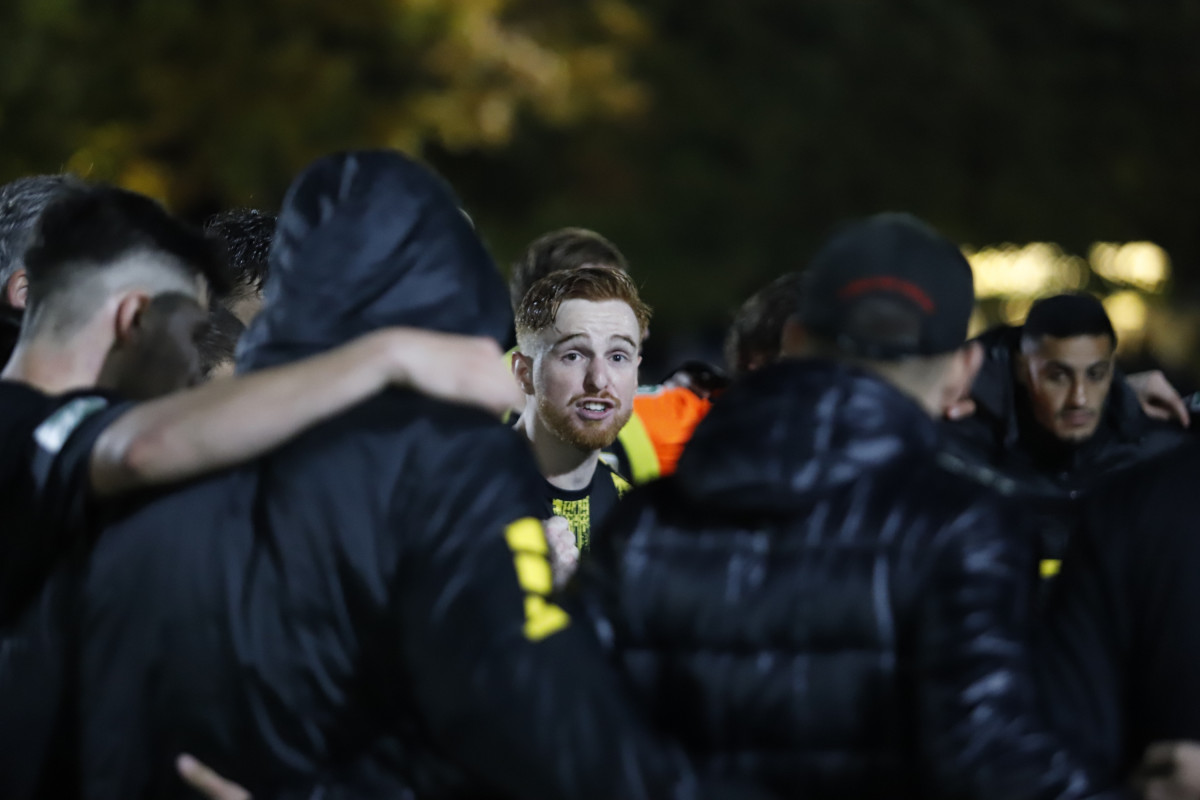 Zu Beginn des zweiten Durchgangs präsentierte sich die Alemannia dann deutlich verbessert. Mehr Entschlossenheit in den Zweikämpfen und offensive Durchschlagskraft verliehen der Grauer-Elf zunehmend Sicherheit. Sieben Minuten nach Wiederanpfiff schlug sich das dann auch im Spielstand nieder. Ein Freistoß landete über Umwege bei Marcel Damaschek, dessen Schuss Jackmuth vor die Füße von Müller abwehrte – dieser vollendete überlegt zur 1:0-Führung für die Alemannen (52.). Nur sechs Minuten später hatte Jumpei Ebisu aus spitzem Winkel die Möglichkeit zum Ausgleich, Mroß war aber auf dem Posten. Stattdessen baute die Alemannia die Führung aus: Nach einem Ballgewinn in der eigenen Hälfte setzten die Schwarz-Gelben zum Kontern an. Der steil geschickte Dej bediente den mitgelaufenen Müller mustergültig per Querpass, letzterer ließ noch einen Gegenspieler aussteigen und schob zum 0:2 ein – Doppelpack (68.). In der Folge war der Mittelrheinligist um den Anschluss bemüht, richtig gefährlich wurde es aber nicht mehr – bis zur 88. Minute, als Kocak nach einer Überzahlsituation frei vor Mroß auftauchte, diesen verlud und damit den 1:2-Endstand markierte. Denn danach passierte nichts mehr, die Alemannia sicherte sich aufgrund einer Leistungssteigerung im zweiten Abschnitt den Einzug in die zweite Pokalrunde. Grauer erklärte nach der Partie: „Ich habe den Jungs in der Kabine gesagt, dass wir uns nicht anstecken lassen dürfen von den Emotionen. Wir mussten die Basics auf den Platz bringen, das ist uns im zweiten Abschnitt deutlich besser gelungen.“