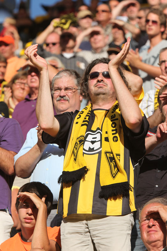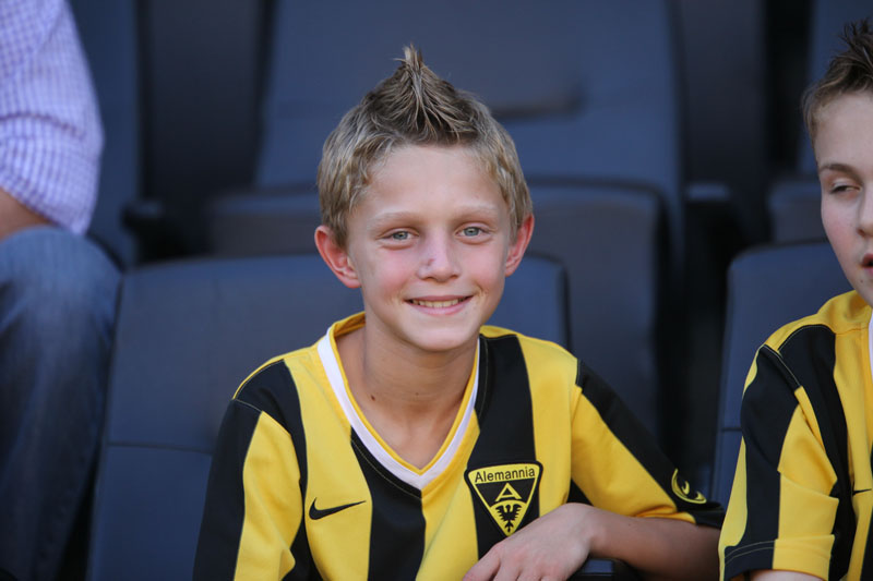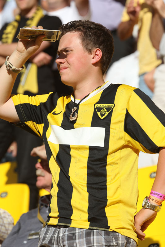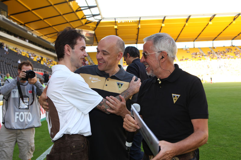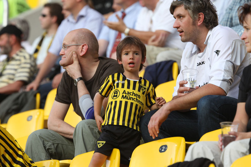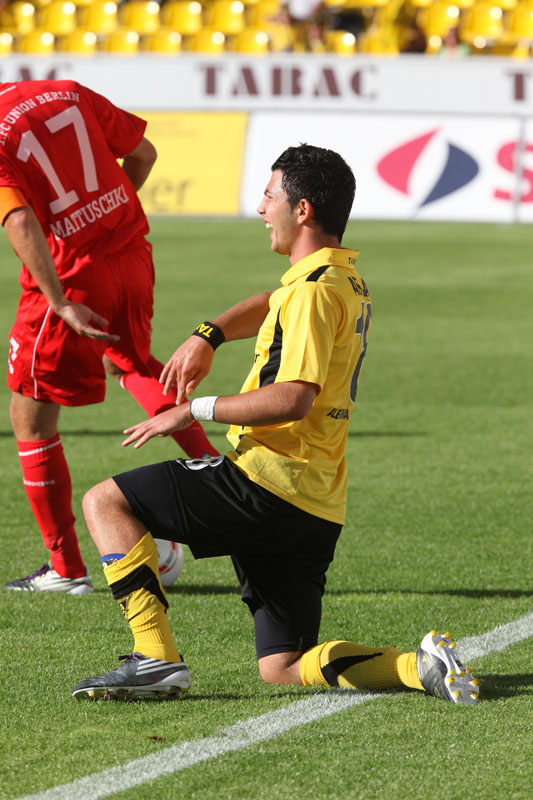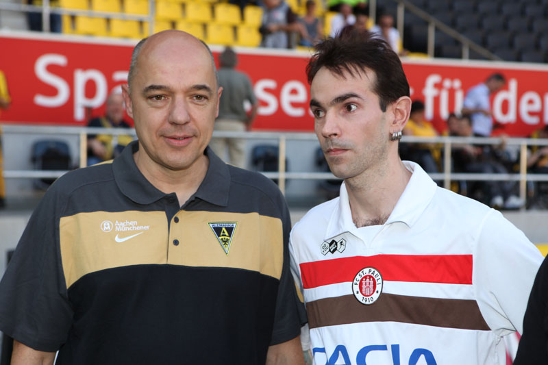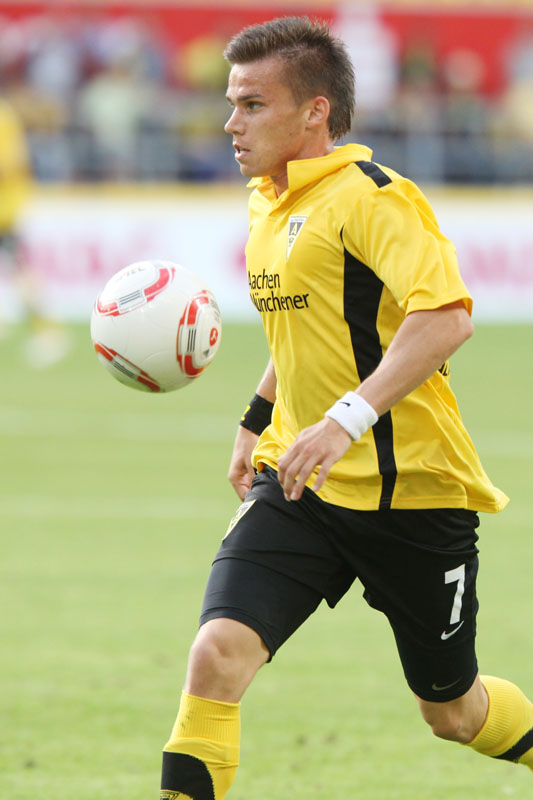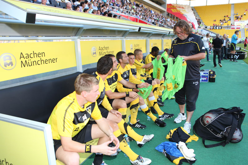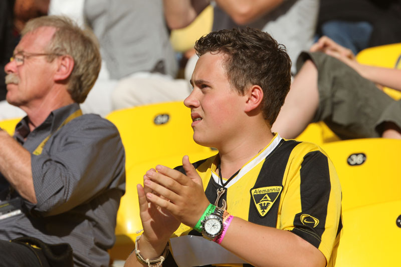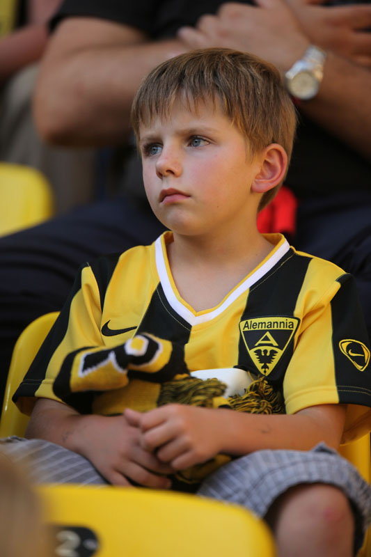 In der 71. Minute musste Alemannias Coach verletzungsbedingt wechseln – Zoltan Stieber kam für Alper Uludag. Alemannias Neuzugang fügte sich nahtlos ins druckvolle Spiel seiner Kollegen ein und machte kurze Zeit später erstmals auf sich aufmerksam. Seinen direkt ausgeführten Freistoß von der Strafraumgrenze konnte Glinker nur knapp zur Ecke abwehren (78.). Vier Minuten später dann das hochverdiente 2:1 für die Schwarz-Gelben. Stieber setzte sich auf der rechten Seite gut durch und brachte den Ball direkt in den Fünfmeterraum, wo sich die Köpenicker die Kugel selbst ins Tor lenkten (82.). Jetzt war die Stimmung an ihrem Höhepunkt angelangt. Der Sieg zum Auftakt war zum Greifen nahe, als die Gäste aus Berlin die Alemannia ein zweites Mal schockten. Da die Viererkette der Schwarz-Gelben die Kugel hinten nicht heraus bekam, bestrafte Ede die Jungs vom Tivoli eiskalt aus sieben Metern – 2:2 (84.).