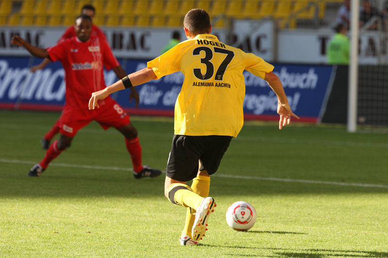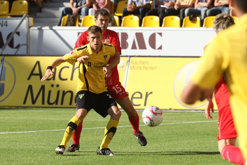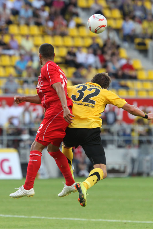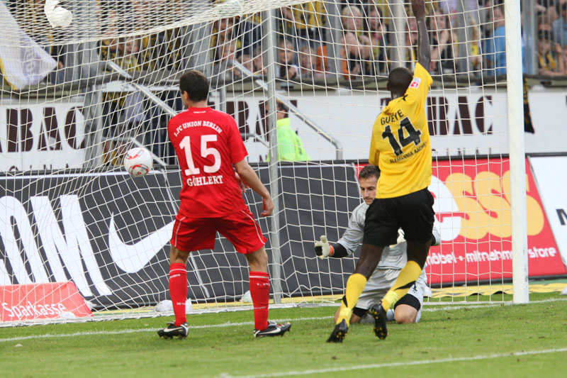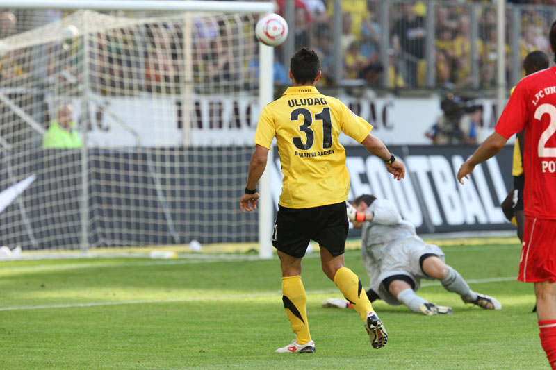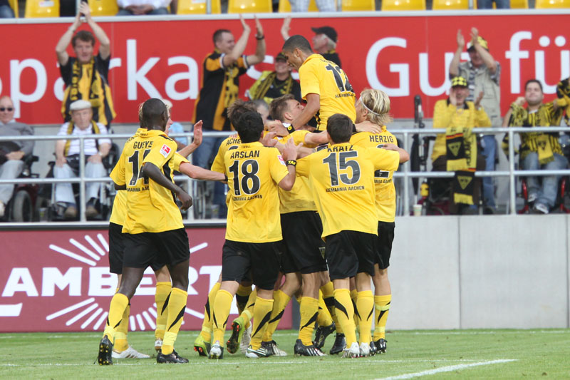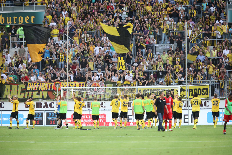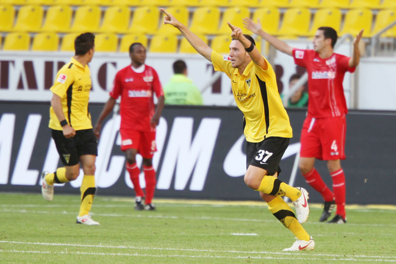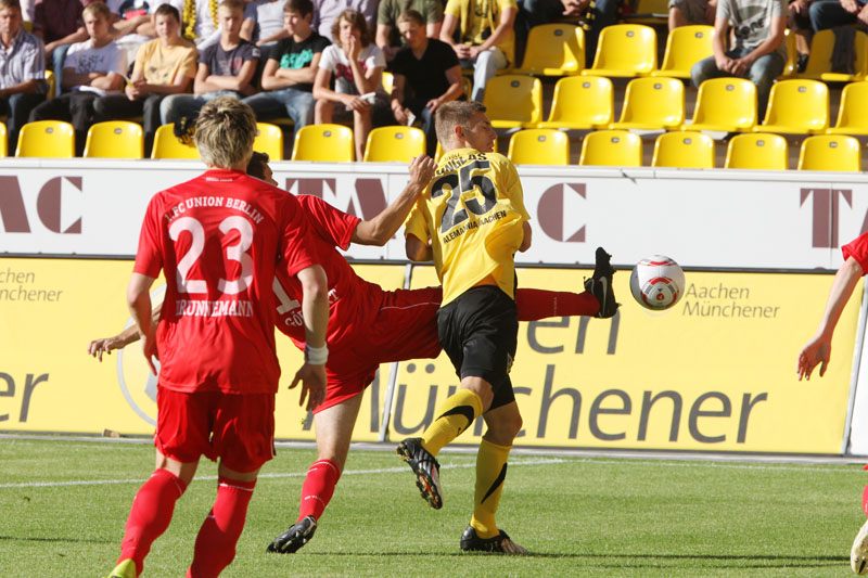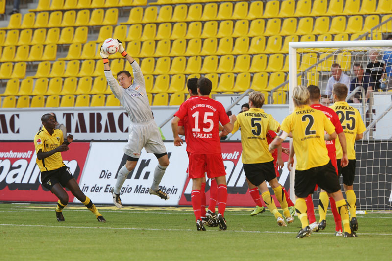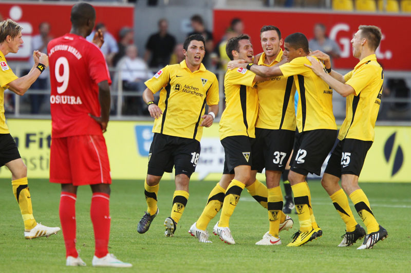 Offensiv, aggressiv und leidenschaftlich – trotz starker Leistung kam die Alemannia beim ersten Saisonspiel vor 20.021 Zuschauern am Tivoli „nur“ zu einem 2:2-Remis gegen den 1. FC Union Berlin. Karim Benyamina hatte die Köpenicker in der 33. Minute überraschend in Führung gebracht, ehe Marco Höger noch vor der Pause den verdienten Ausgleich erzielte. Im zweiten Durchgang gelang den Schwarz-Gelben durch ein Eigentor der Gäste die Führung. Chinedu Ede bescherte den Berlinern kurz vor Ende der Partie noch den Ausgleich.