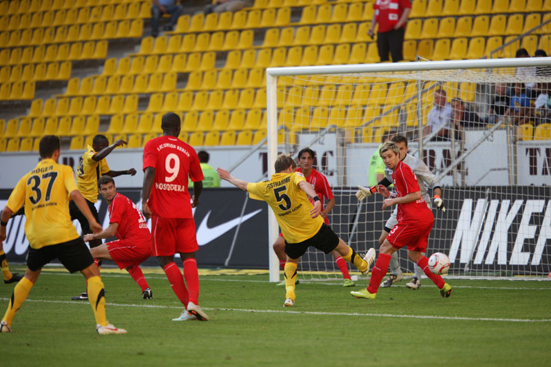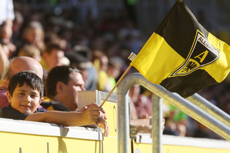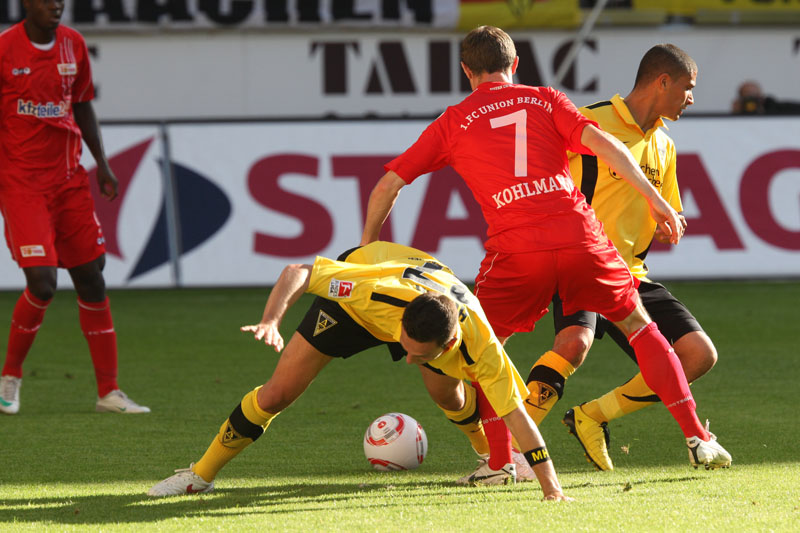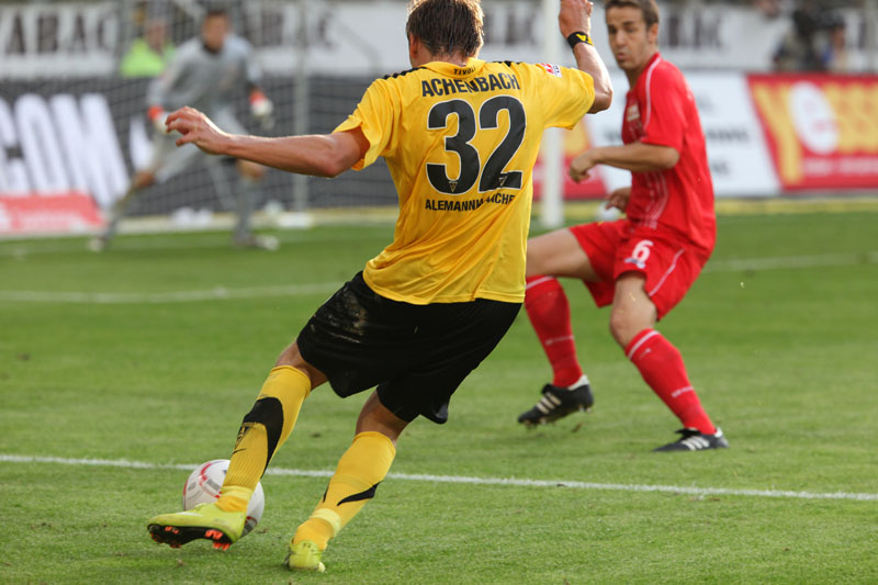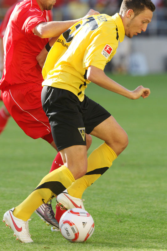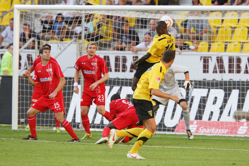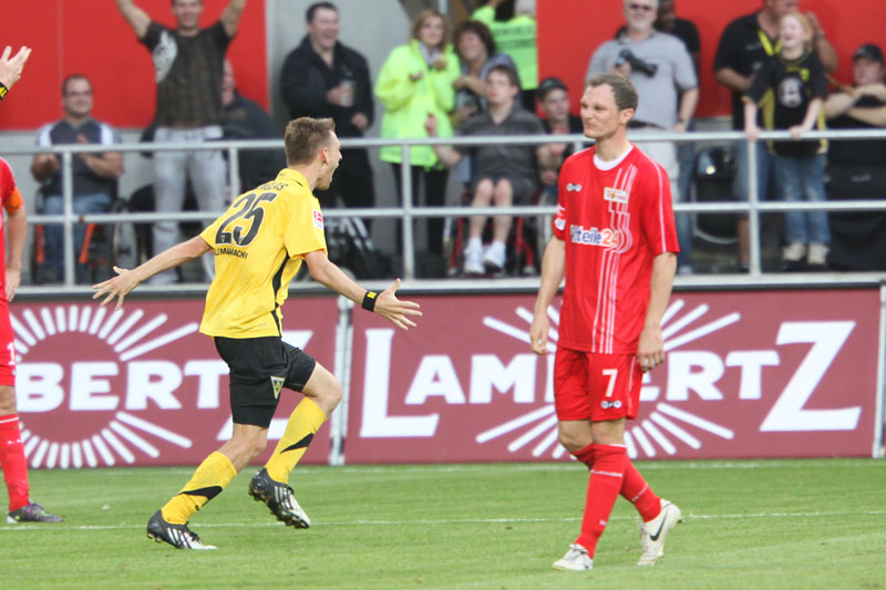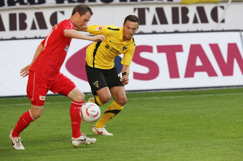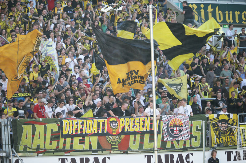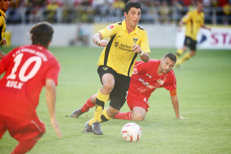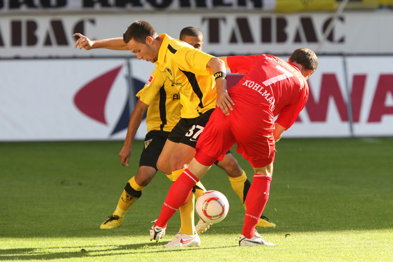 Offensiv, aggressiv und leidenschaftlich – trotz starker Leistung kam die Alemannia beim ersten Saisonspiel vor 20.021 Zuschauern am Tivoli „nur“ zu einem 2:2-Remis gegen den 1. FC Union Berlin. Karim Benyamina hatte die Köpenicker in der 33. Minute überraschend in Führung gebracht, ehe Marco Höger noch vor der Pause den verdienten Ausgleich erzielte. Im zweiten Durchgang gelang den Schwarz-Gelben durch ein Eigentor der Gäste die Führung. Chinedu Ede bescherte den Berlinern kurz vor Ende der Partie noch den Ausgleich.
