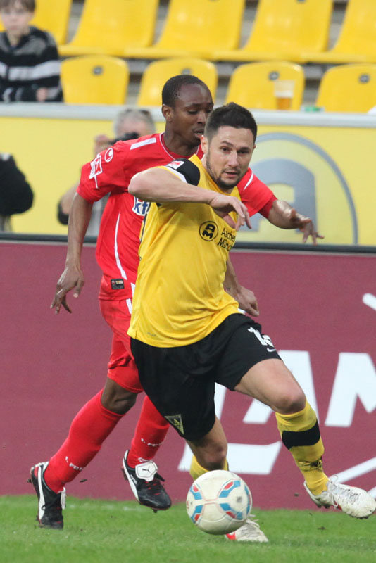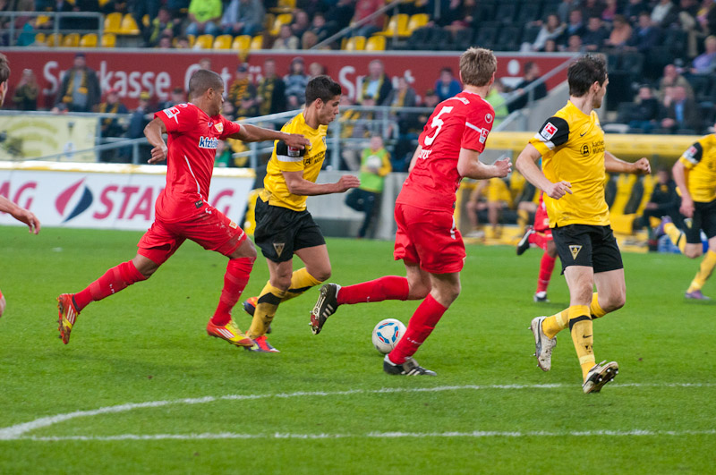 Die zweite Halbzeit war gerade einmal wenige Sekunden alt, schon folgte der nächste Rückschlag für die Tivoli-Jungs: Achenbach verpasste, Zoundi zog von der rechten Seite nach innen, zog mit dem linken Fuß ab und hämmerte das Leder unter die Latte – 1:3 (46.). Schlechter hätte der zweite Durchgang nicht beginnen können. Der dritte Gegentreffer zeigte nun deutlich seine Wirkung im Spiel der Schwarz-Gelben, denen kaum noch etwas gelang. Hektisch und verunsichert ging man zu Werke, viele Fehlpässe luden die Gäste immer wieder aufs Neue ein. Eine verunglückte Rückgabe von Casper brachte höchste Gefahr, Waterman verhinderte Schlimmeres gegen Terodde (58.).